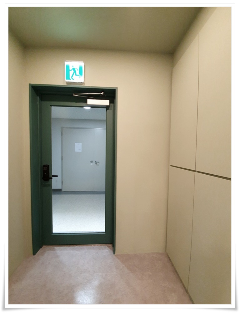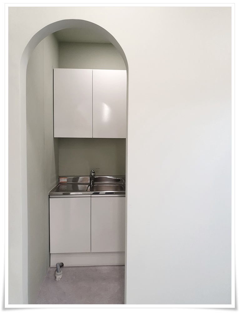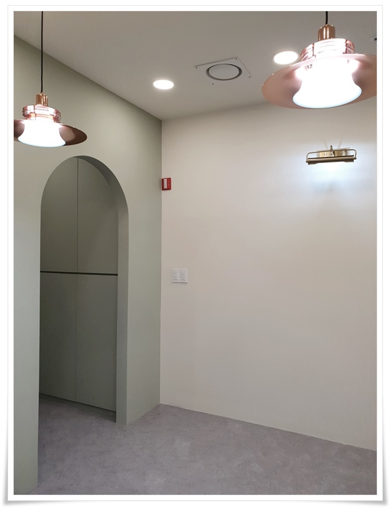 뿐만아니라 ISO에서 보신 것과는 다르게 색이 사용된 외벽이 기존의 외벽보다 조금 더 늘어난 것을 확인하실 수 있으실 것입니다. 이는 화이트톤으로 되어있는 공간에 청록색 문만 덩그라니 있는 것보다는 이와 같은 디자인적 구성을 통해서 출입문과 외벽이 자연스럽게 배치가 될 수 있도록 노력을 해보았습니다.