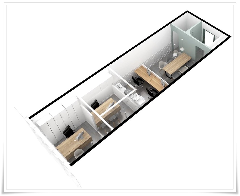 사무실의 ISO입니다. 좁은 평수의 법률사무실임에도 불구하고 저희는 일자형 사무실의 특색을 살려서 공간을 좁아보이지 않게 디자인 구성하였습니다. 남는 동선이 없도록 효율적으로 설계를 진행하였으며 이를 이용하는 고객들이 전혀 좁다고 느껴지지 않도록 만들기도 하였습니다.
