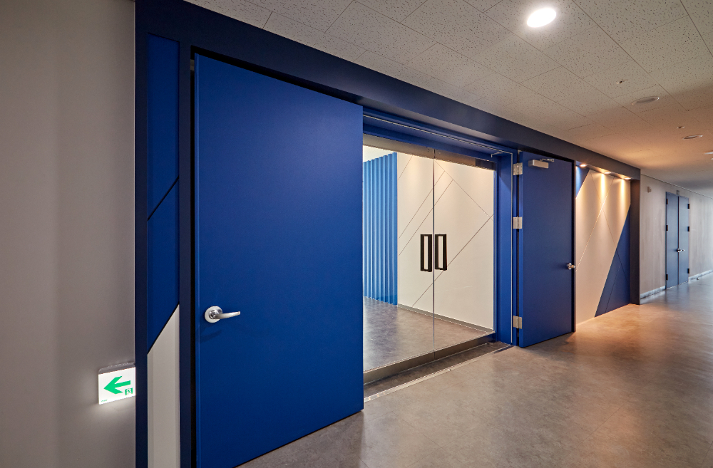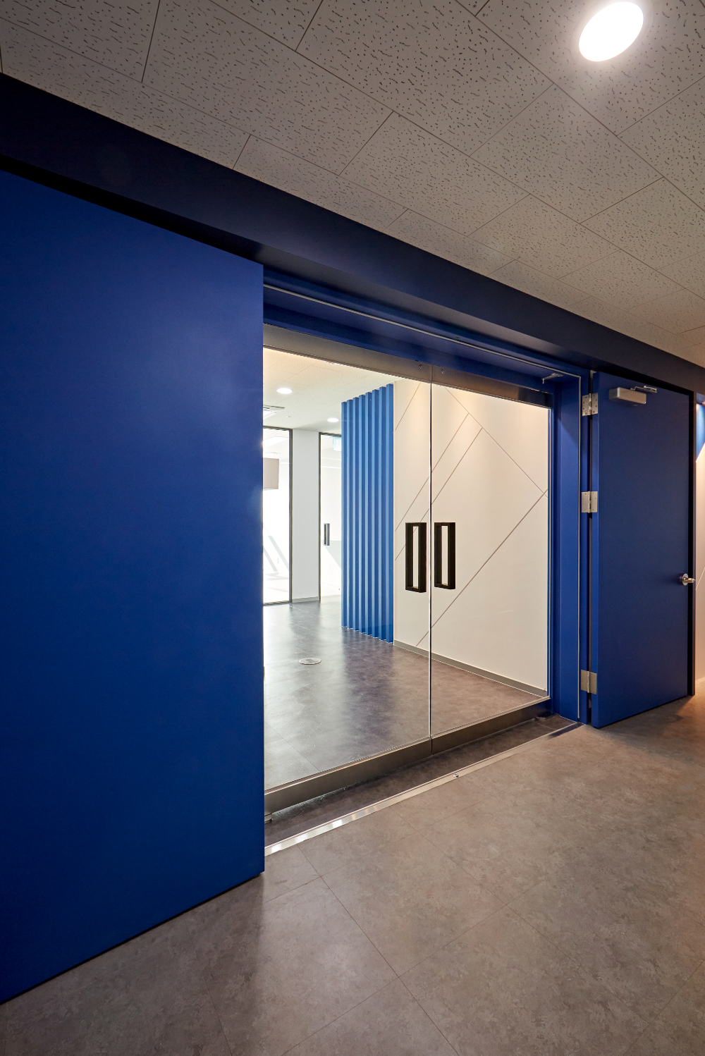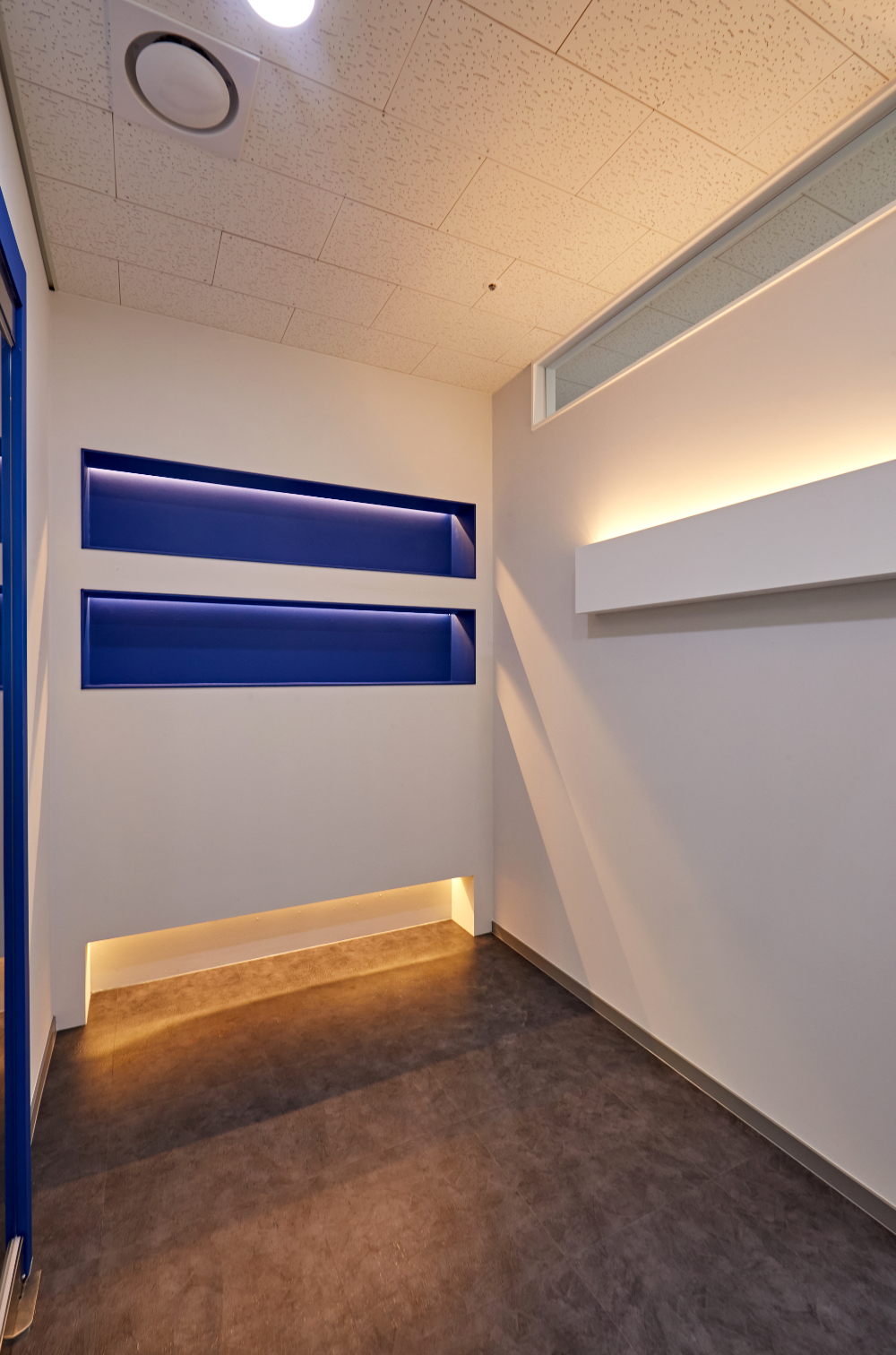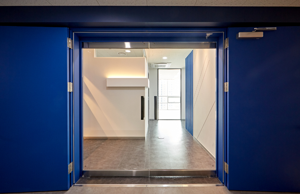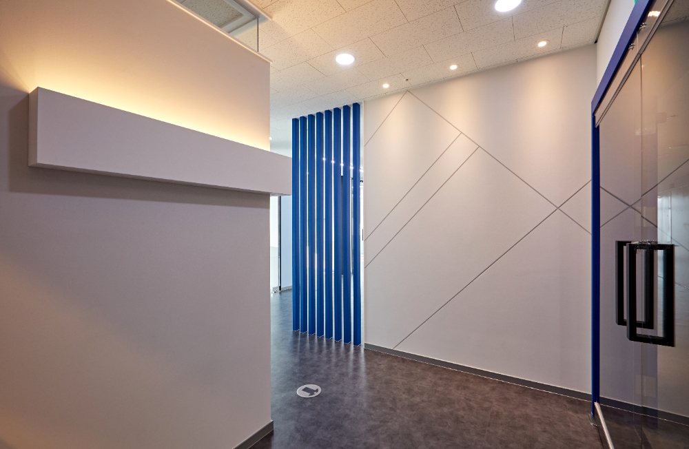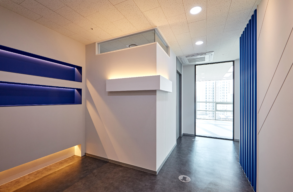 포인트 컬러인 블루로 가벽 프레임을