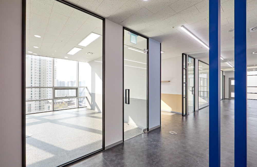 블랙 프레임의 글라스월로 구분하며