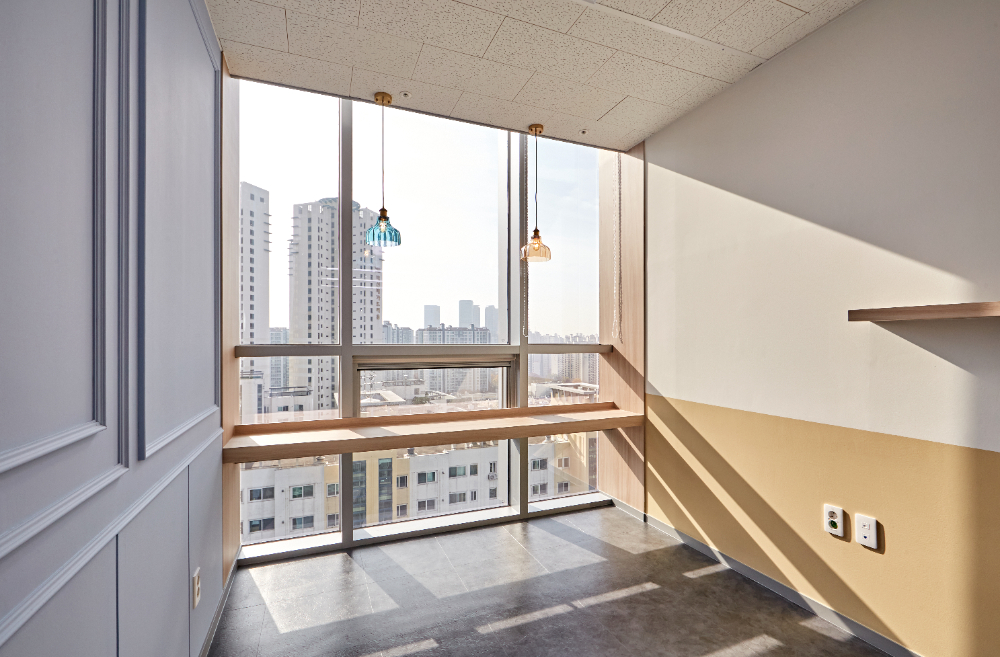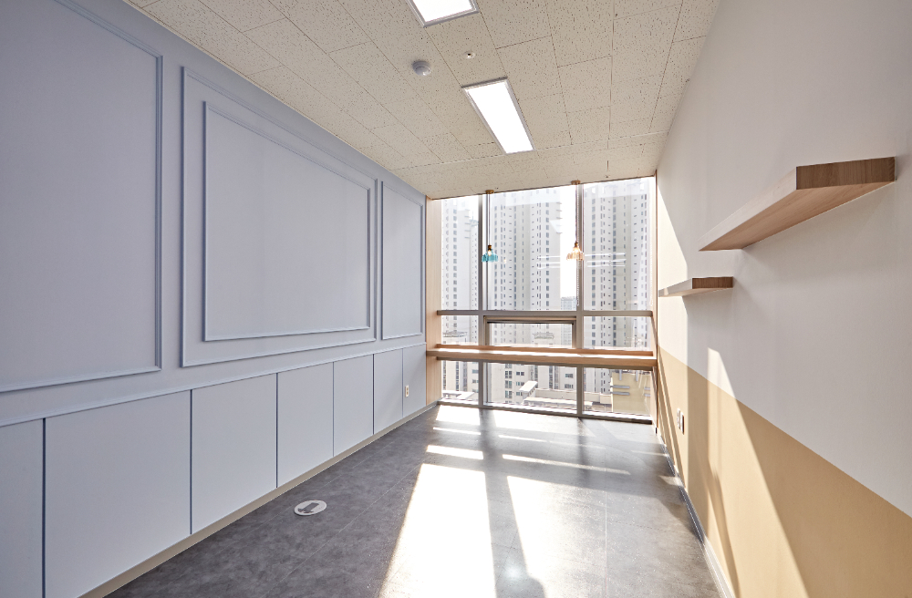 제공하기 위해 한쪽 벽면을 연한 하늘색으로