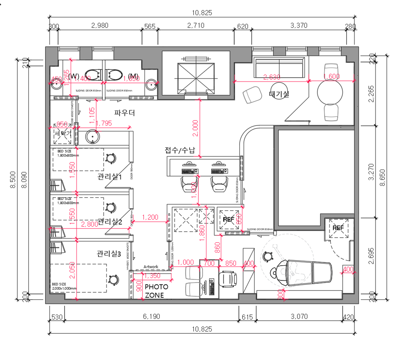 먼저 대구병원인테리어 피부과의 2D 레이아웃입니다.