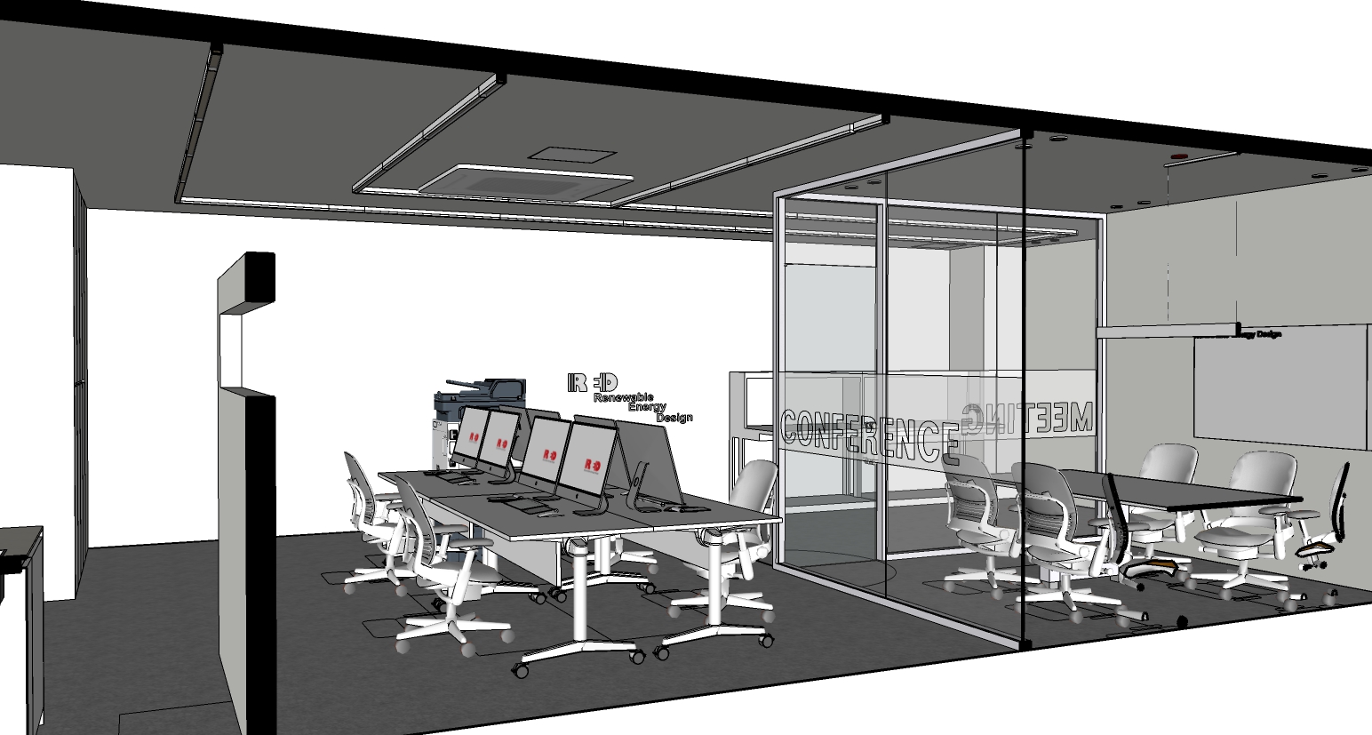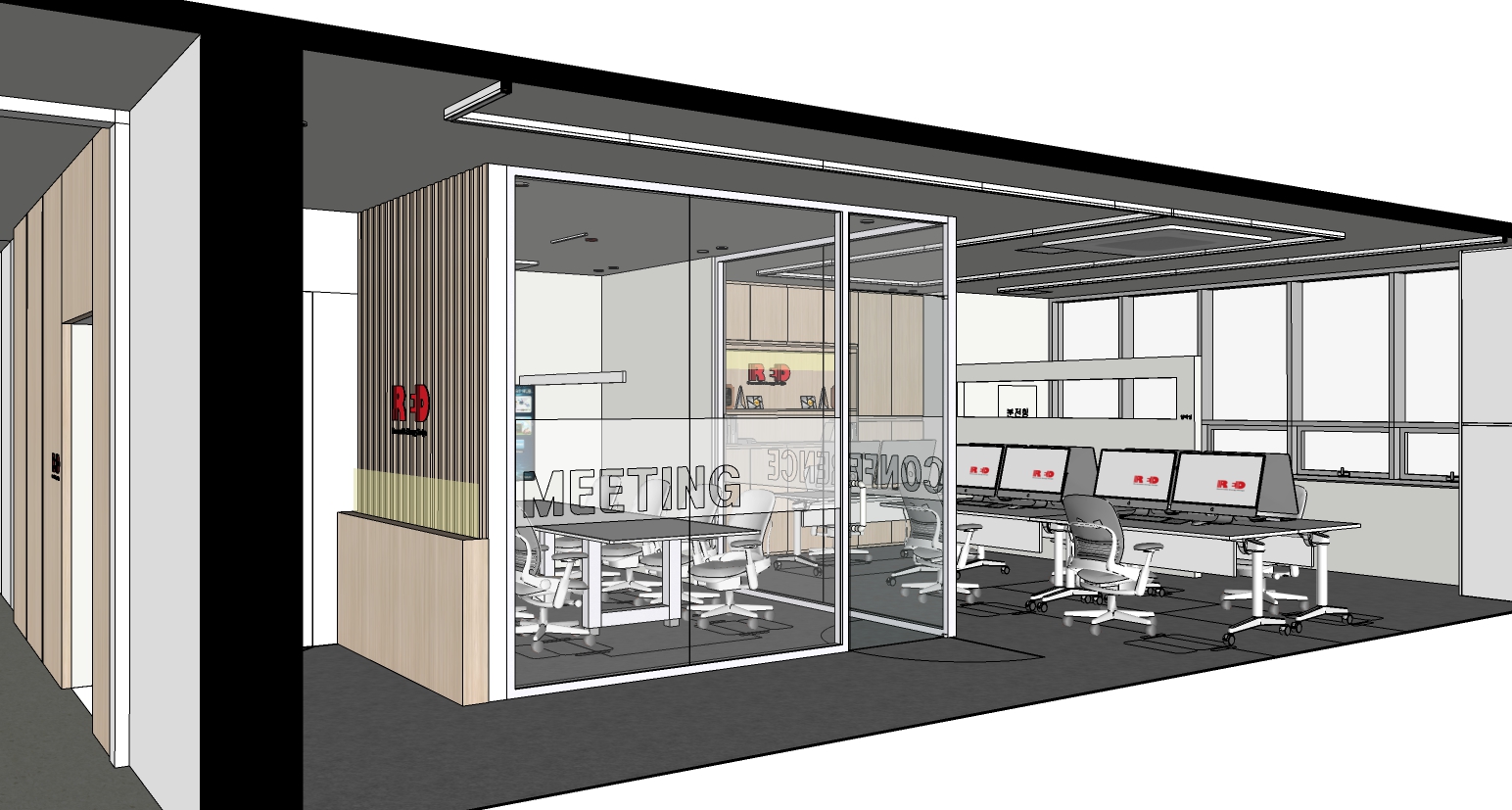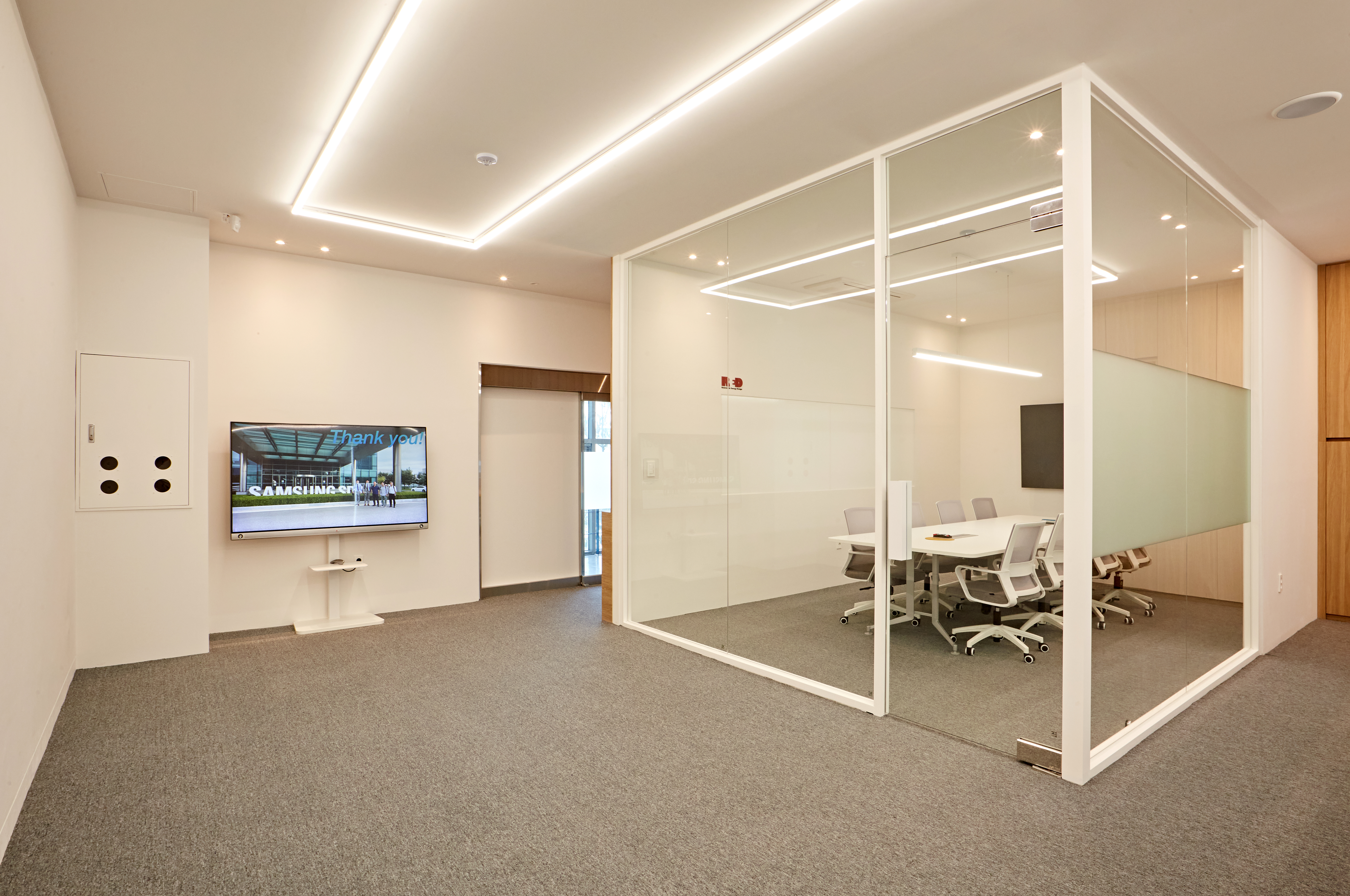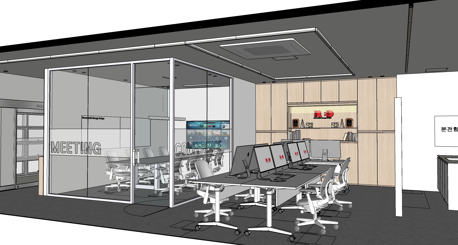 미팅룸 및 회의실은 유리가벽을 세워서
