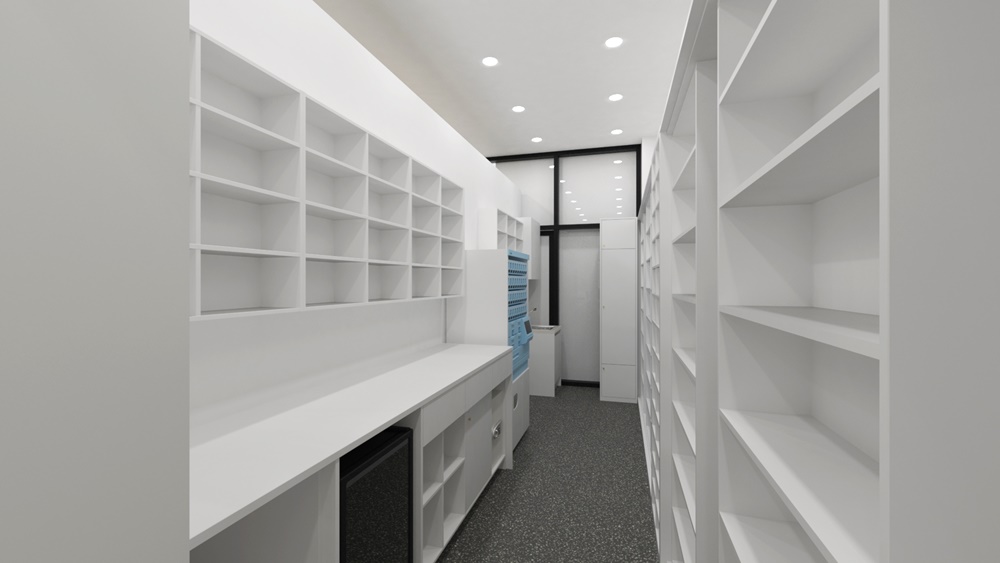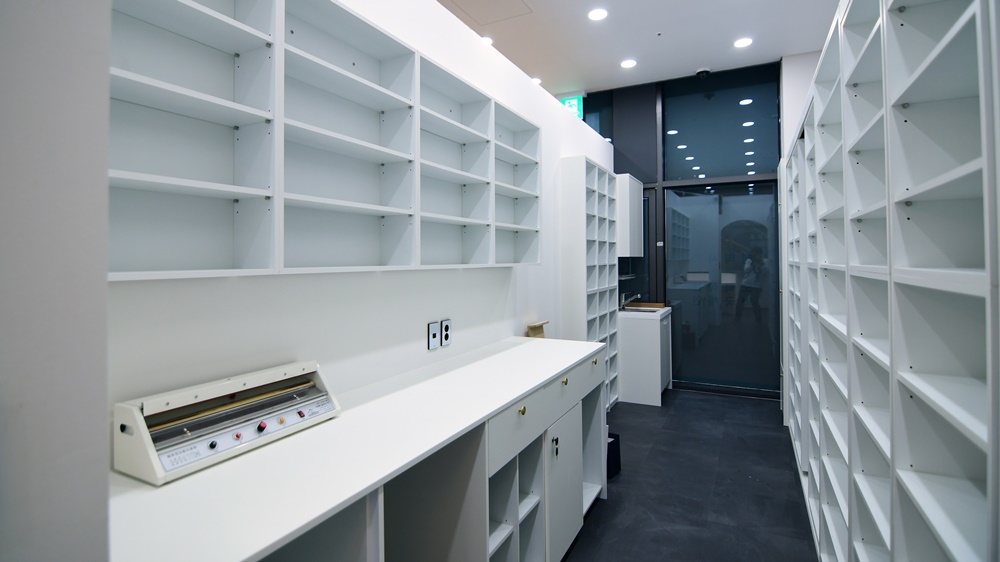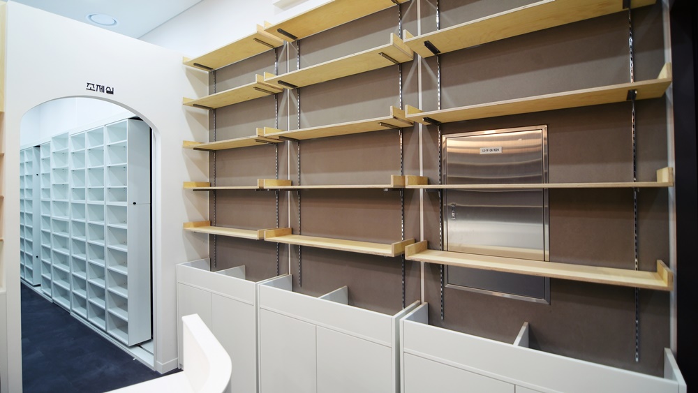 조제실은 약사가 의약품을 조제하는 공간으로 청결하고 위생적인 환경을 유지하도록 하며, 작업에 필요한 공간을 확보합니다.