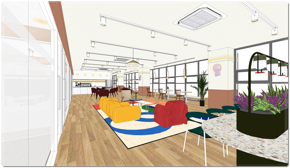 물론, 반대로 업무를 진행하면서 휴식을 취할 수도 있는 공간이 되었기도 하고요. 중요한 것은 이러한 방식이 업무 효율을 높여 성과로 이어질 수 있기 때문에 많은 기업에 적용 중이고 사옥 내 카페테리아 시공만 따로 의뢰하는 경우도 많다는 것이죠.