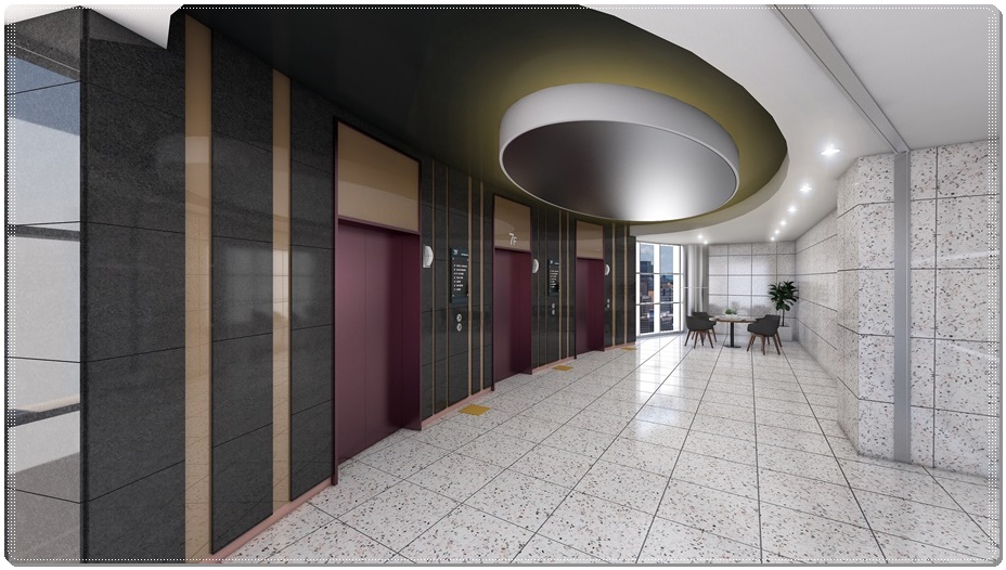 디자인설계를 진행하다보면 엘리베이터 공간부터 회사의 이미지를 부여해야하는 공간도 있습니다. 층 전체를 사용하거나 엘리베이터 바로 앞에 사무실이 위치해있을 경우인데요, 이럴 경우 외부 파사드의 개념으로 익스테리어를 진행해주시면 내부 인테리어와 분위기를 통일하면서 회사의 브랜드 이미지를 임팩트있게 표현할 수 있죠.