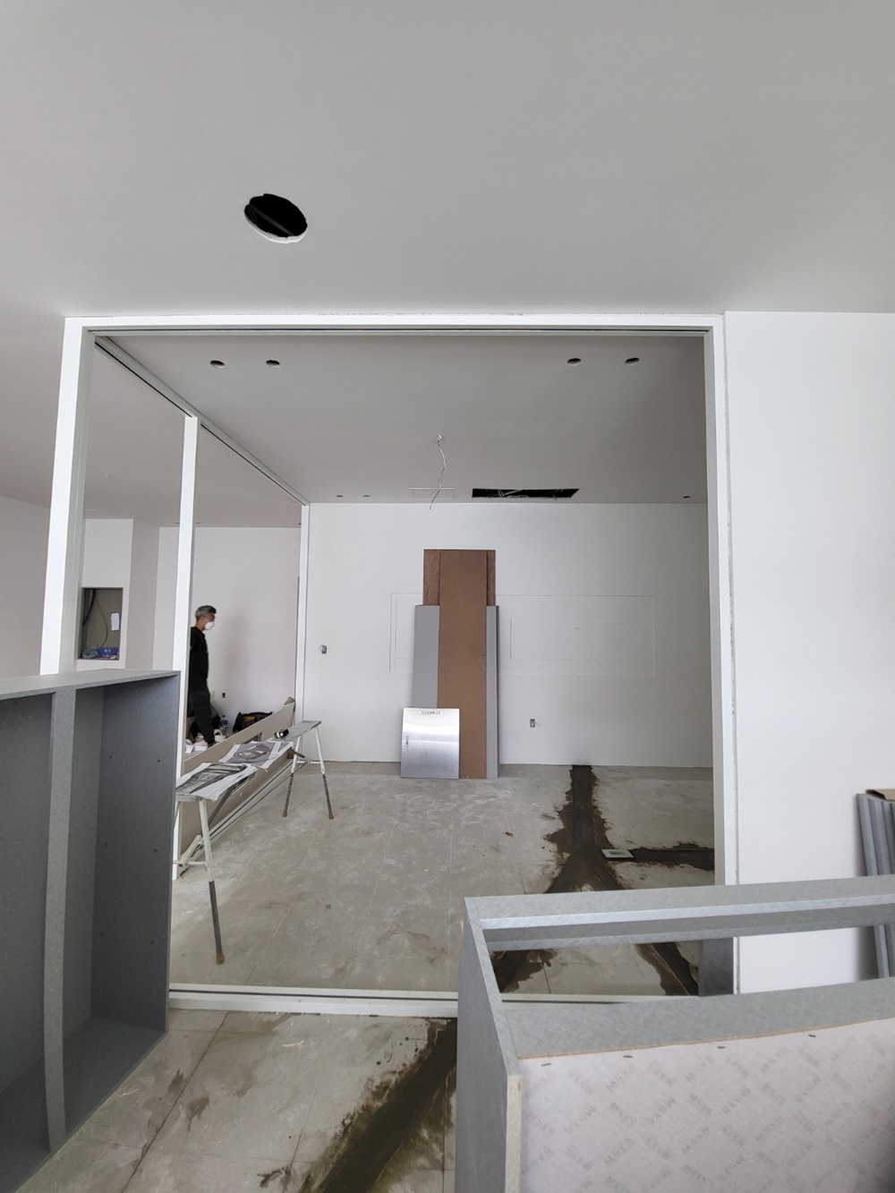 대전인테리어업체추천 소형 사무실 골조 공사는 공간의 유연성을 위해 유리 파티션이나 이동식 가벽을 설치하는데, 모든 벽체와 천장의 수직 및 수평을 정확하게 맞추어 다음 마감 공사의 품질을 높입니다.