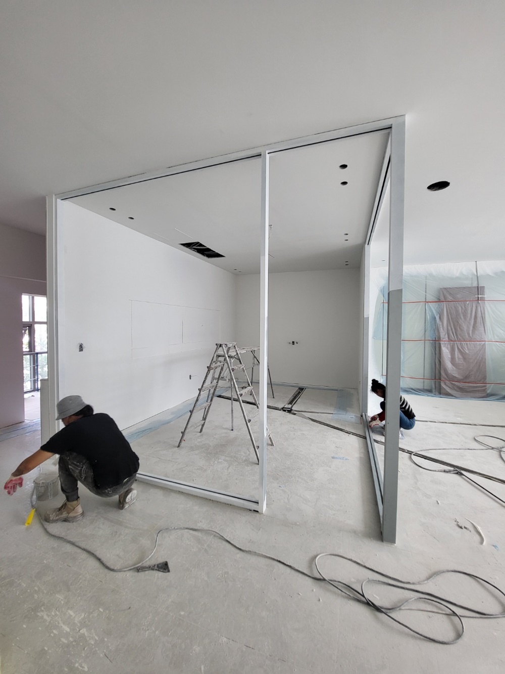 골조 공사 이후에는 석보보드 등 벽체 표현에 퍼티 작업과 샌딩 작업을 통해 매끄러운 면을 만들고 이후 확정된 색상에 맞춰 친환경 페인트나 벽지를 시공합니다.