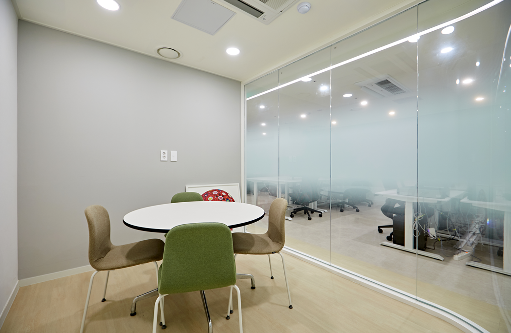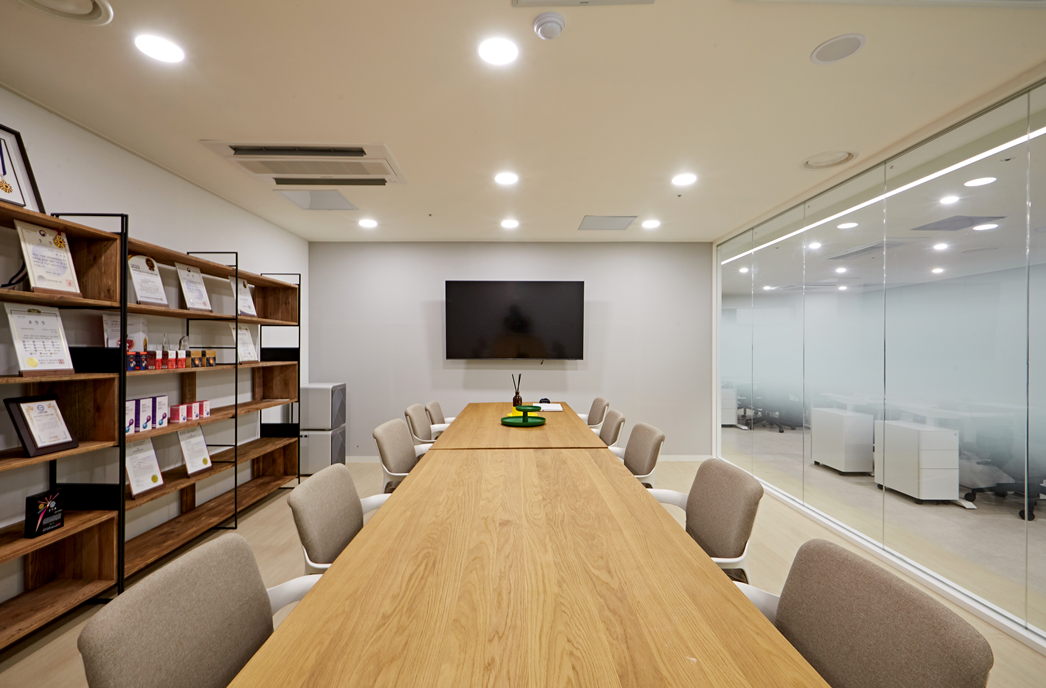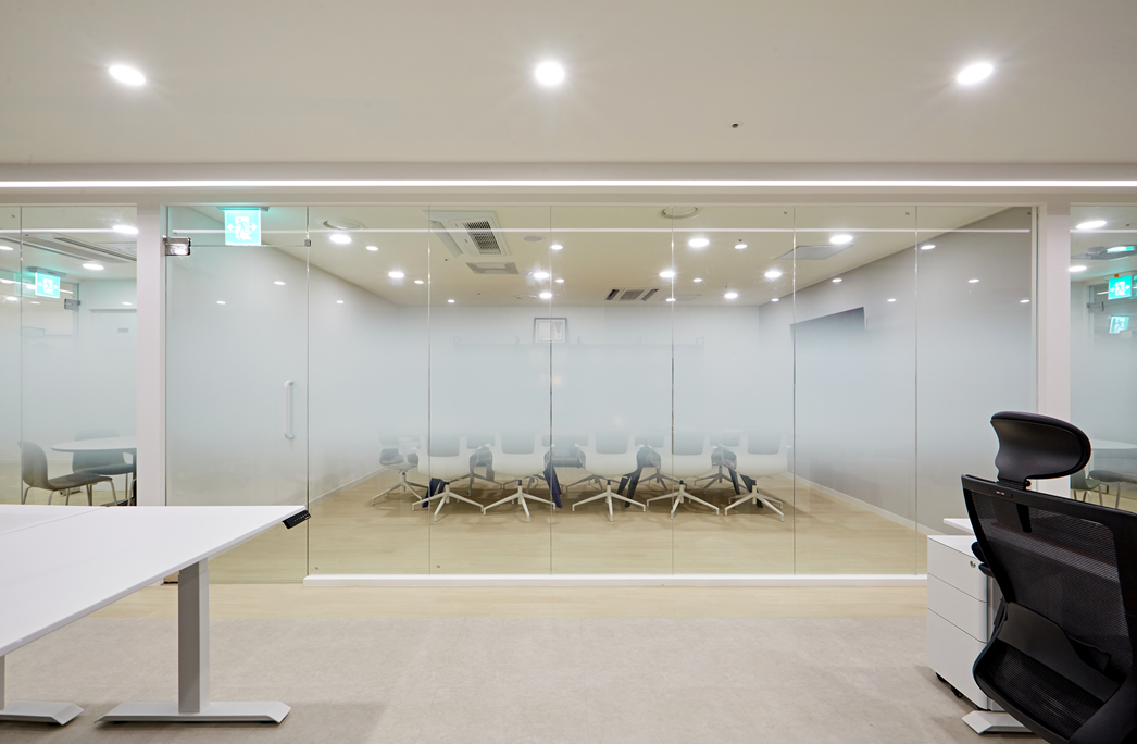 회의실은 유리가벽 디자인으로 개방감을 확보하면섣, 독립적인 공간으로 활용할 수 있도록 계획했습니다.