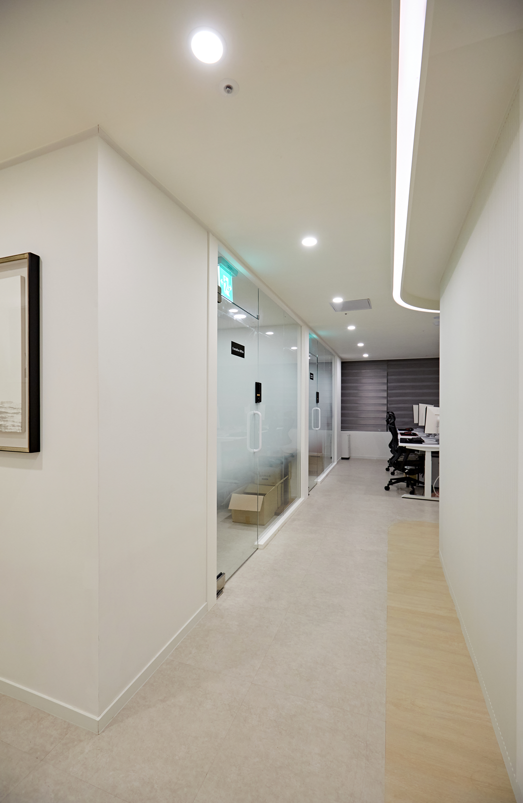 사무실 복도는 단순히 이동 통로를 넘어 갤리리형 복도 인테리어로 완성했습니다.