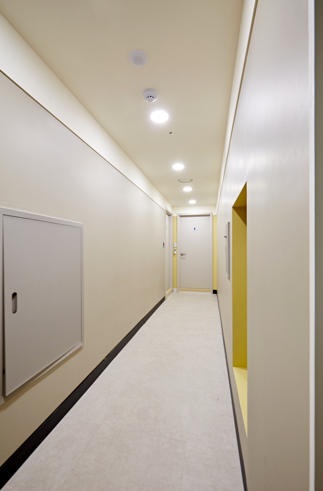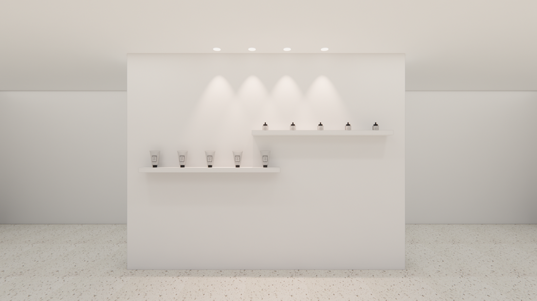 벽면 조명은 은은한 매립형 다운라이트로 디자인하여, 공간 전체에 균일한 조도를 유지하면서 사인물의 존재감을 돋보이게 했죠.