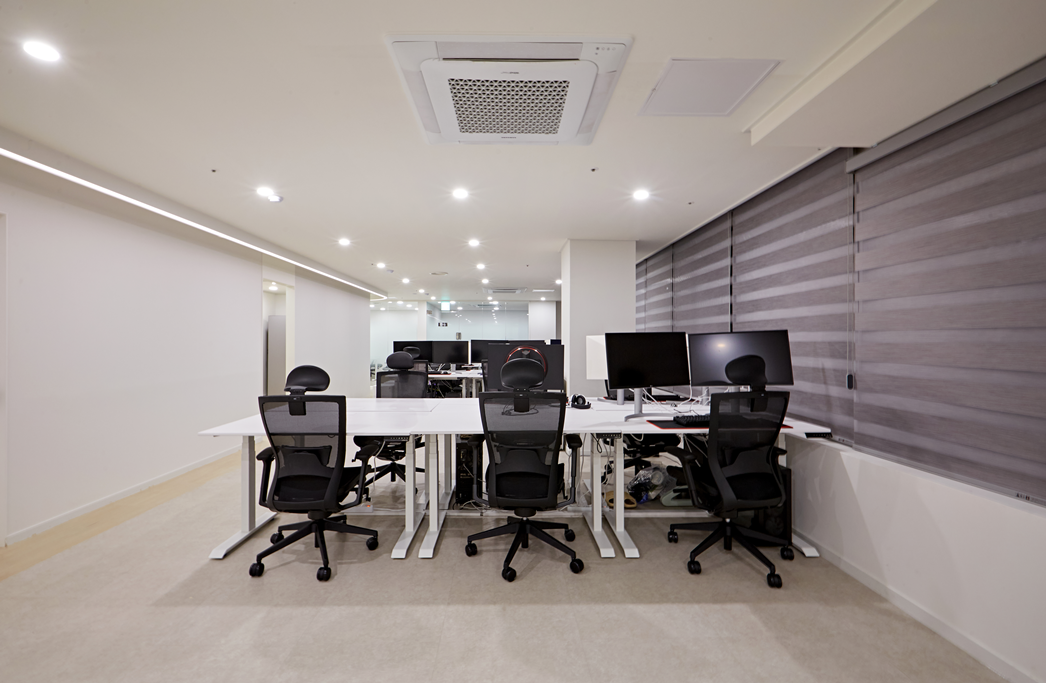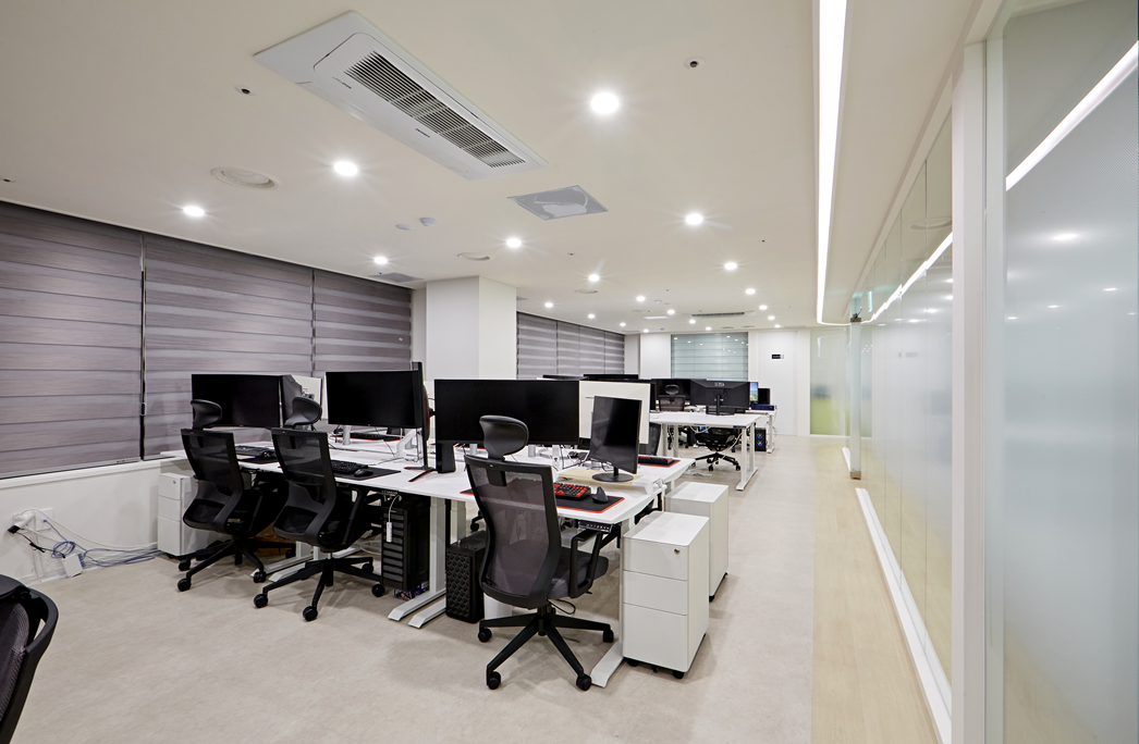 주 업무공간은 오픈형 레이아웃으로 구성해 직원 간의 소통과 업무 효율을 높였습니다.