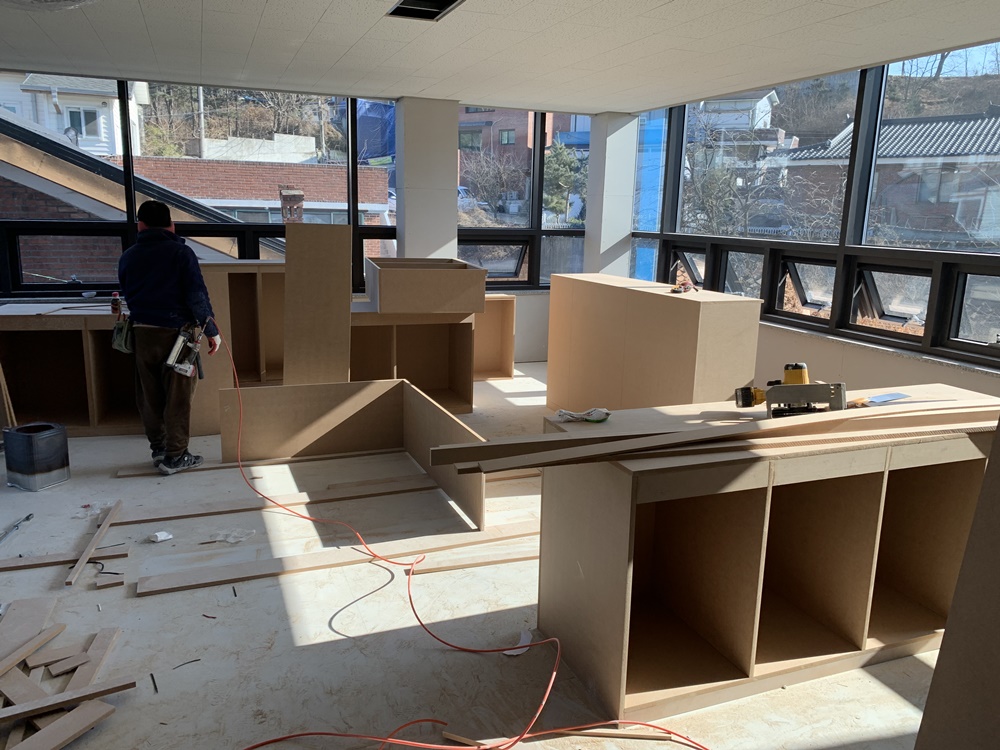 이어지는 목공 작업은 이번 현장의 하이라이트 중 하나였습니다.