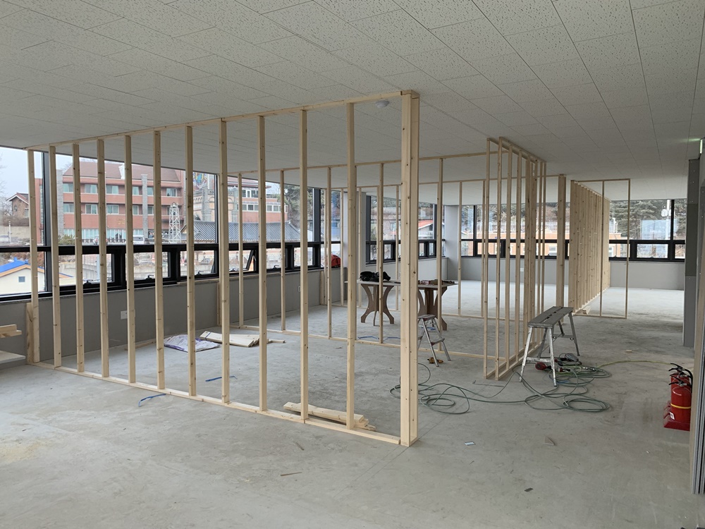 오피스 특성상 많은 전자기기를 사용하기 때문에 배선이 겉으로 드러나지 않도록 바닥과 벽체 내부에 꼼꼼하게 매립 작업을 진행했습니다.