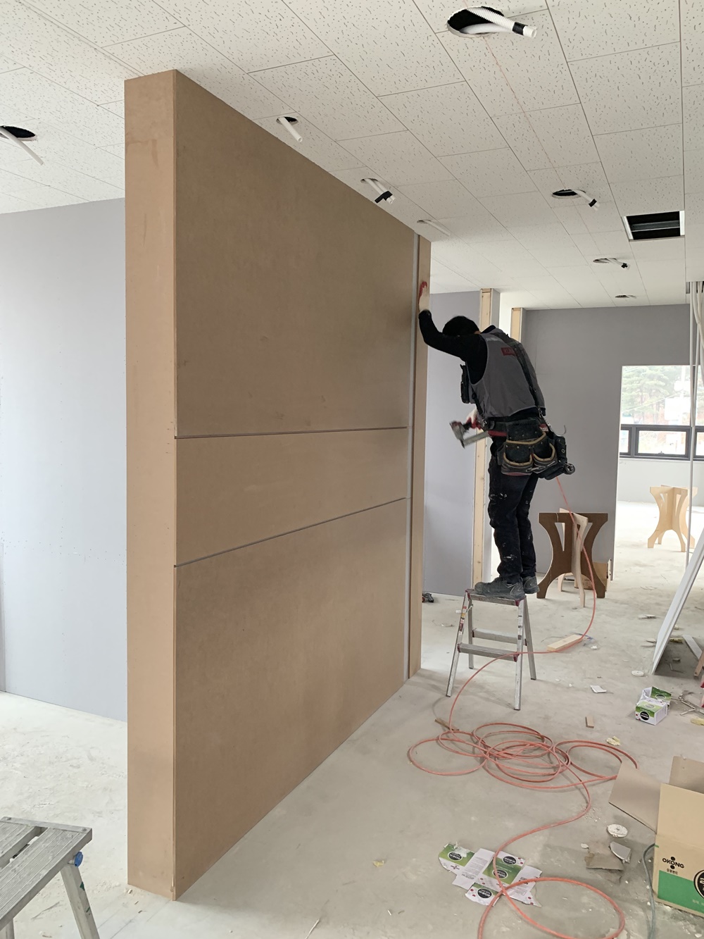공간을 분리하는 가벽을 세우고, 미적인 요소인 우드 간살 파티션을 제작하는 과정에서 치수 하나까지 정밀하게 체크했는데요.