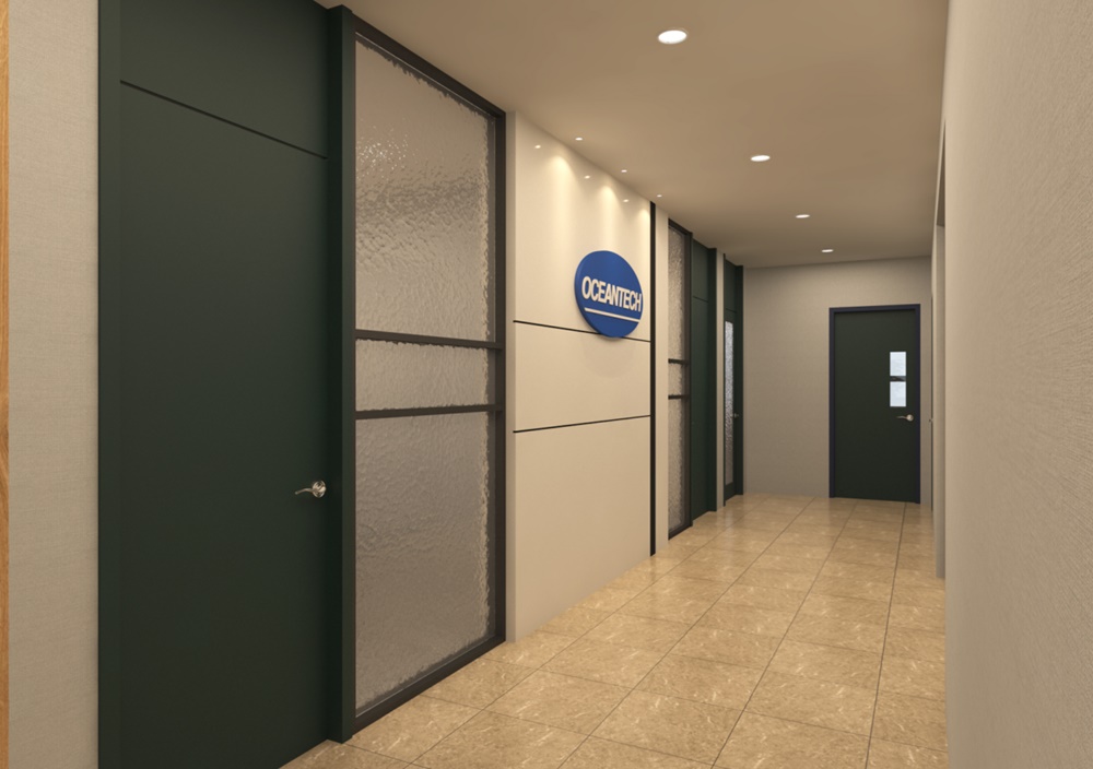 저희 대전인테리어업체는 방문객이 사무실에 들어서기 전부터 기업의 강렬한 아이덴티티를 느낄 수 있도록 벽면 전체를 딥블루와 딥그린 컬러로 과감하게 마감했는데요.