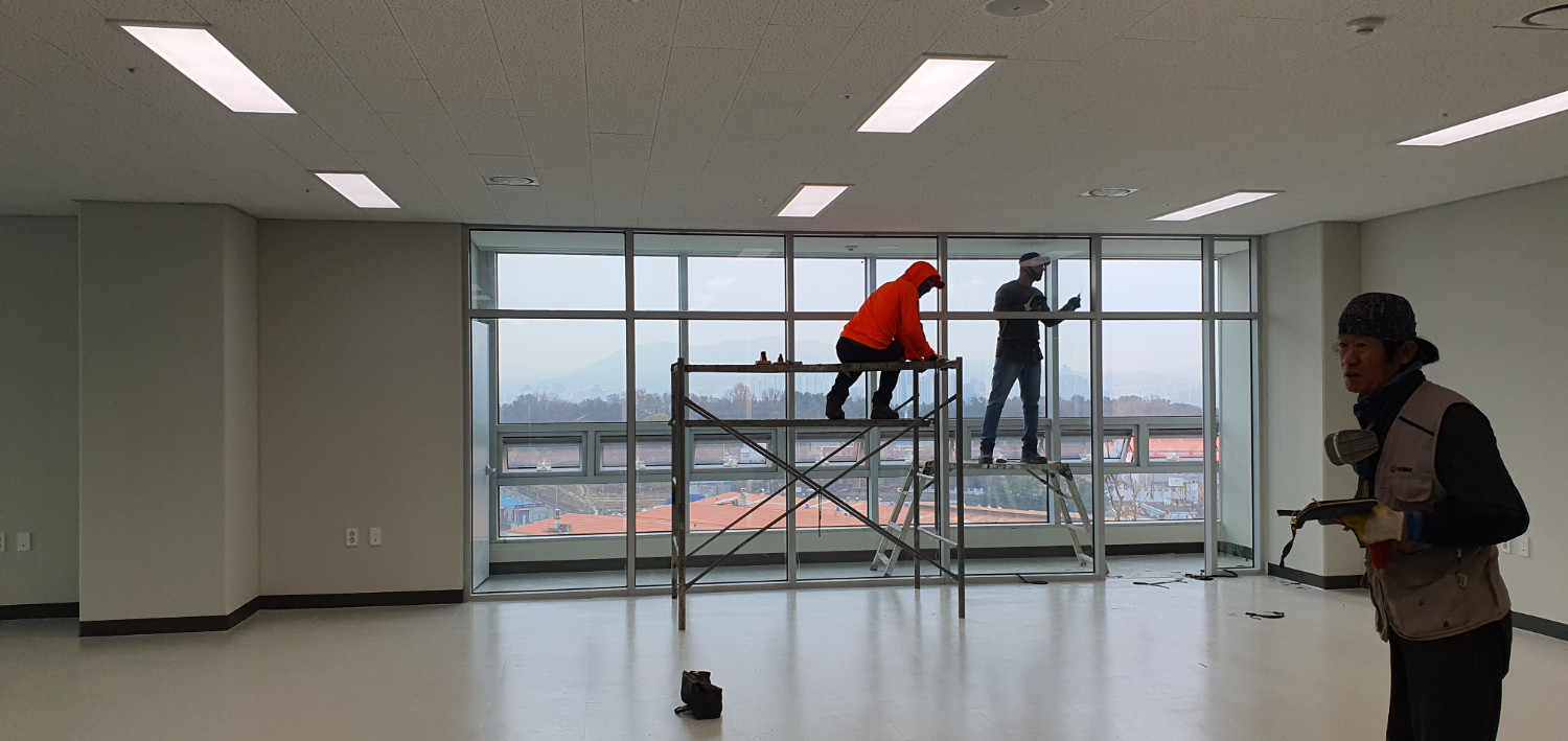 대전 가온비즈타워 지식산업센터인테리어 90평 사무실 시공 현장 정돈된