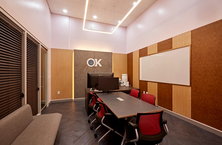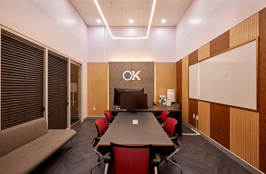회의실의 경우에는 하부에 그린 색상의 포인트를 주었습니다. 네추럴한 인테리어가 기본이기 때문에, 마치 숲속에 온것만 같은 느낌을 한껏 받을 수 있는데요, 이러한 부분과 동시에 엄숙한 회의실의 분위기를 연출 할 수 있기 때문에, 네추럴한 인테리어는 어디에나 잘 어울린다고 볼 수 있습니다.