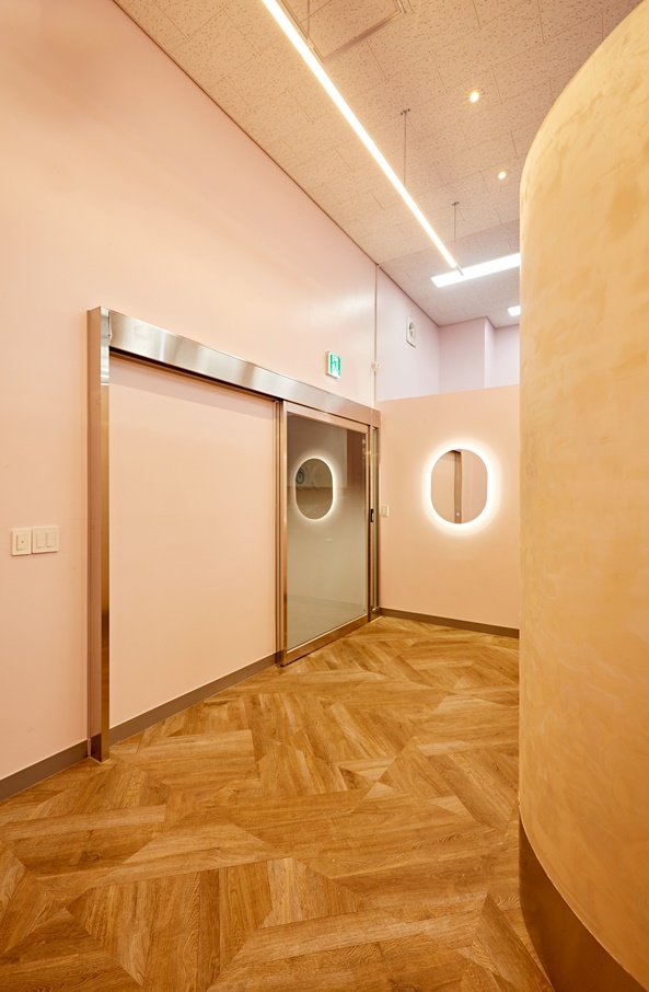 입구에서 들어오면, 바로 보이게 되는 거울과 회사 로고입니다. 가정 내에서 외출을 나갈 경우, 일반적으로 현관앞에 거울을 배치하시는 경우들이 굉장히 많습니다. 나가기 전, 옷 매무새를 가다듬고, 신경을 쓰고 나가야하기 때문에, 최종적으로 거울을 한번 볼텐데요,