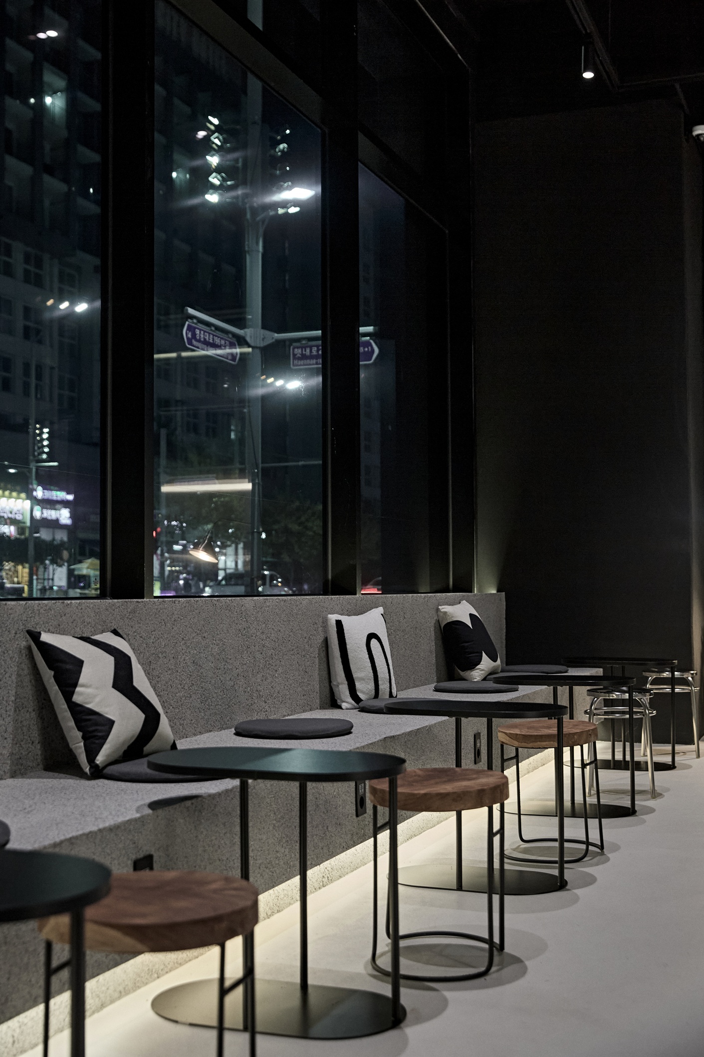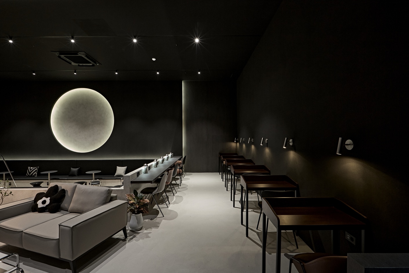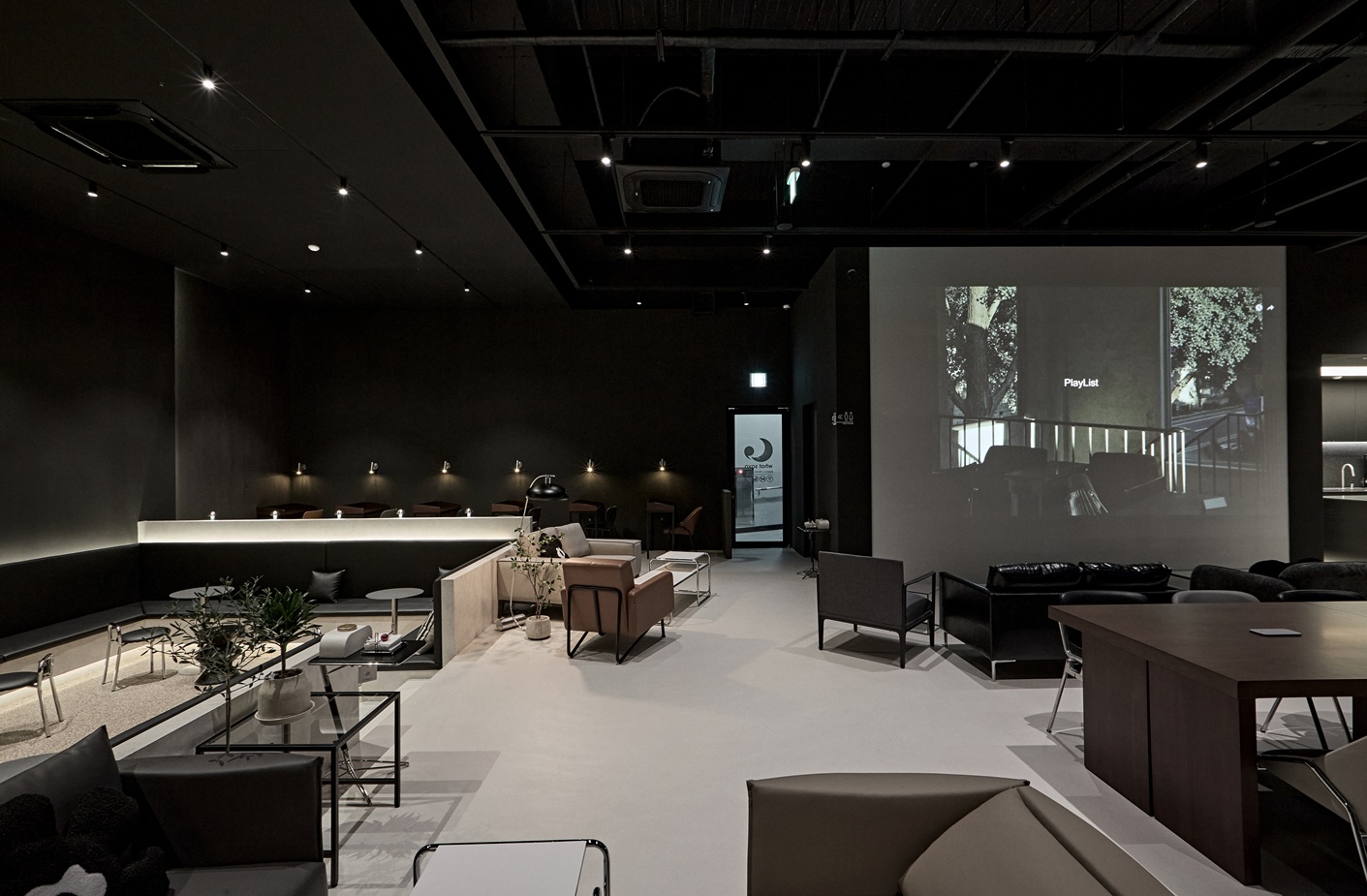 중간 홀에는 곡선형 벽과 은은한 간접조명을 넣어 부드러운 분위기를 살렸고,