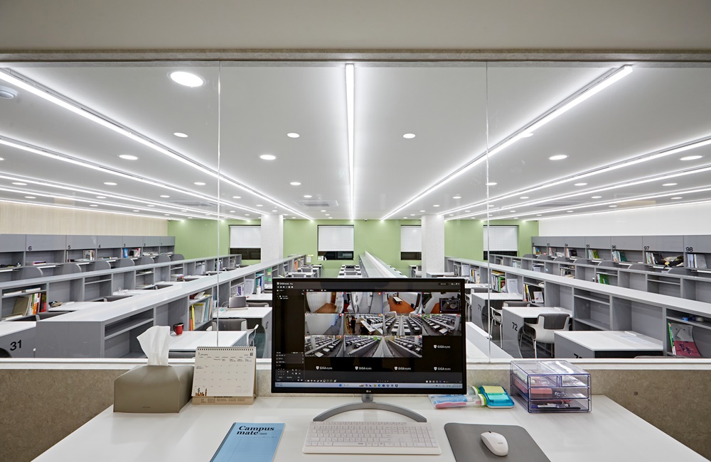 이곳에는 여러 대의 CCTV 화면을 실시간으로 확인할 수 있는 모니터링 시스템이 갖춰져 있어 학습자들이 자율적으로 공부하면서도 적절한 긴장감을 유지할 수 있는 관리형 시스템을 완성했습니다.