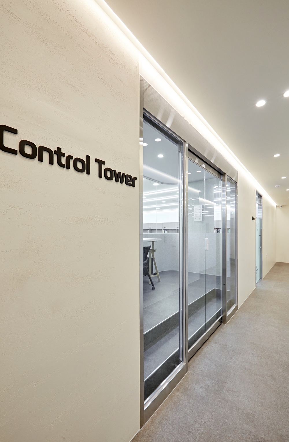 곳곳에 위치한 공간마다 'Myelin-R', 'Control Tower' 등의 감각적인 사인물을 부착하여 공간의 전문성을 높였습니다.