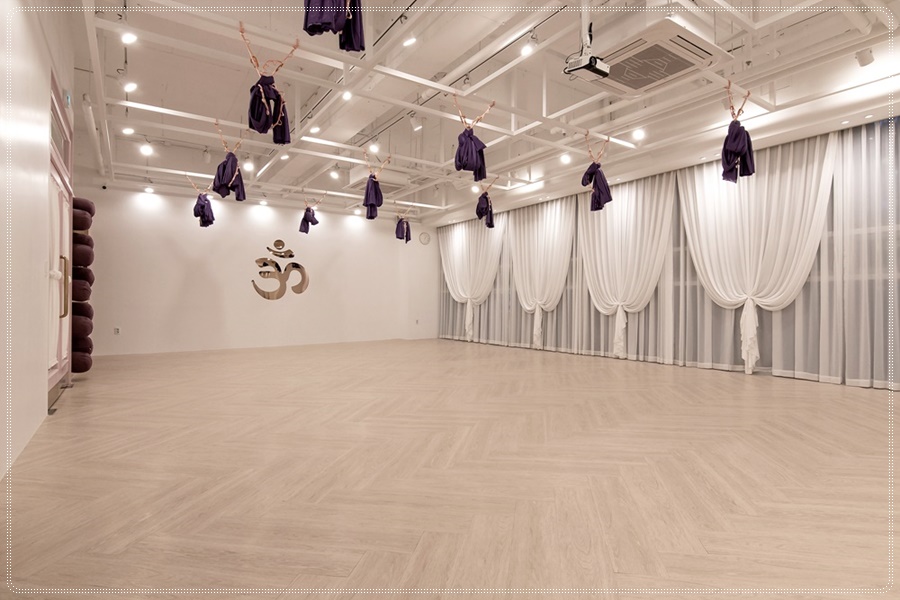 중간중간마다 보이는 인테리어 디자인의 중요 포인트들은 요가원의 전체적인 분위기가 깨지지 않도록 색감 배치로 인한 도움을 주고 있습니다.