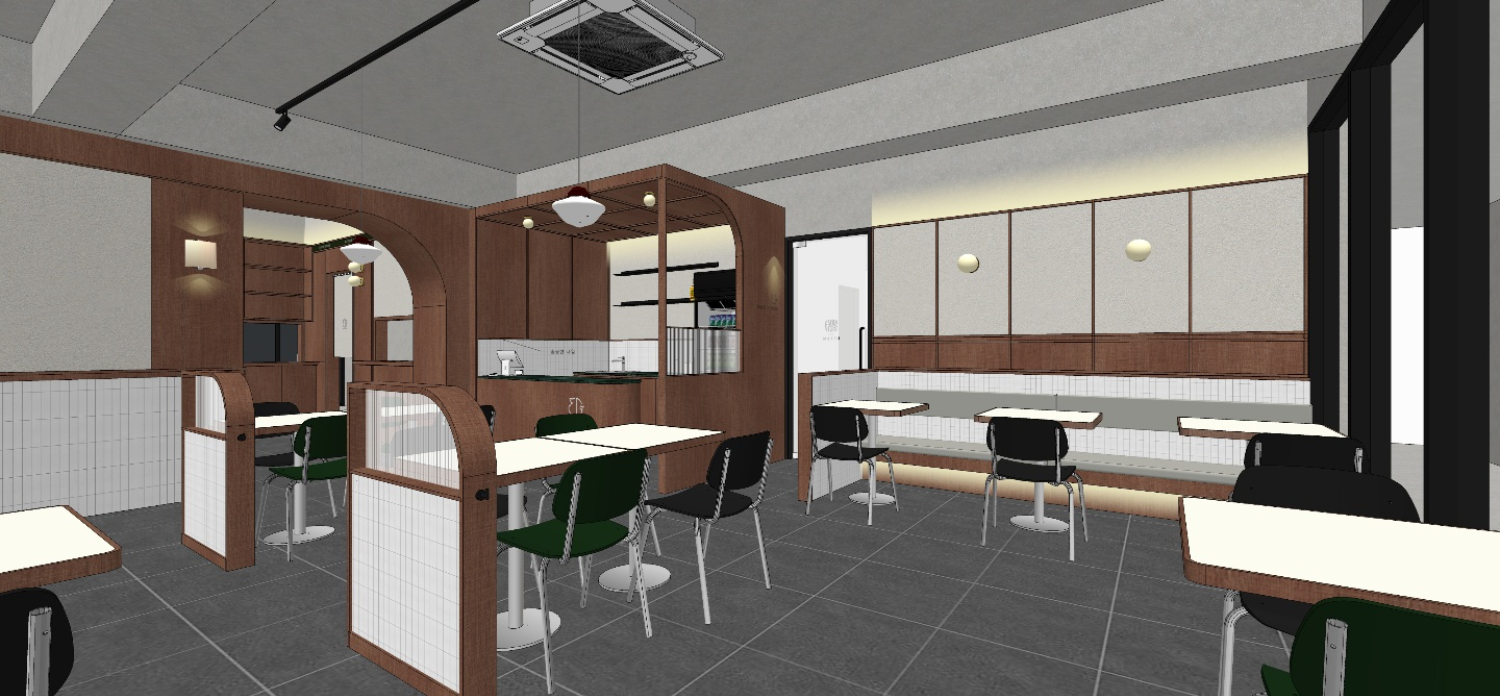 더불어 아치형 라인과 조명으로 트렌디함까지 반영하여 감각적인 돈까스 매장인테리어로 구성 했습니다. 클라이언트 미팅을 통해 최종 시안 확정 후 동작구 상도동 카츠디나인 돈까스 매장인테리어 현장 시공이 시작 되었습니다.