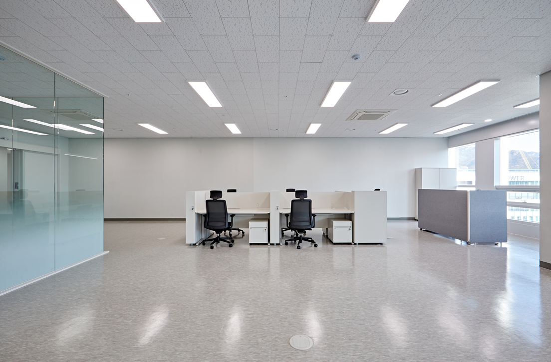 사무실인테리어에서 중요한 요소 중 하나는 전기와 네트워크 설비입니다. 직원들이 원활하게 사용할 수 있도록 전기 배선을 정리하고 꼼꼼하게 배치해 주었습니다. 또한 조명은 전체적으로 밝고 균일한 조도를 제공하는 LED 라인 조명을 선택하여 직원들의 눈 피로를 최소화하고 업무 집중도를 높이는 환경을 조성하였습니다.