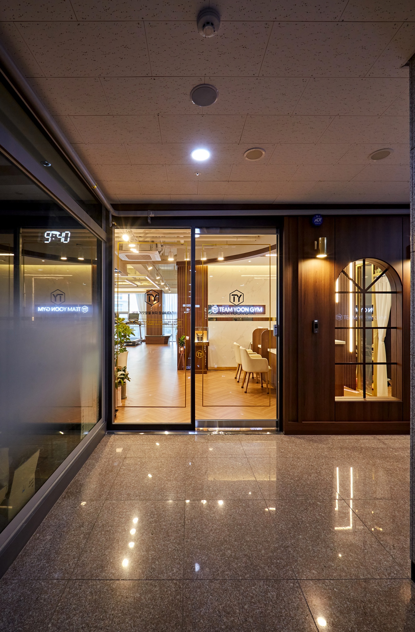 이번 헬스장 입구 파사드도 이러한 고급스러운 느낌을 살려 우드와 조명으로 세련된 디자인으로 연출하였습니다.