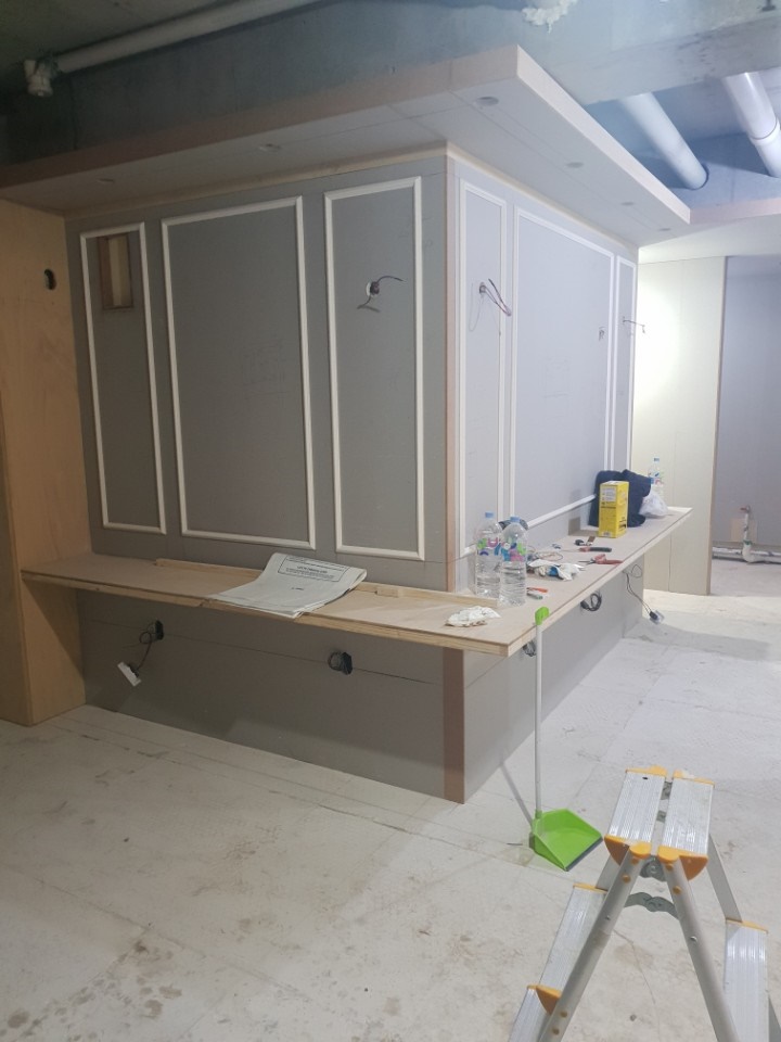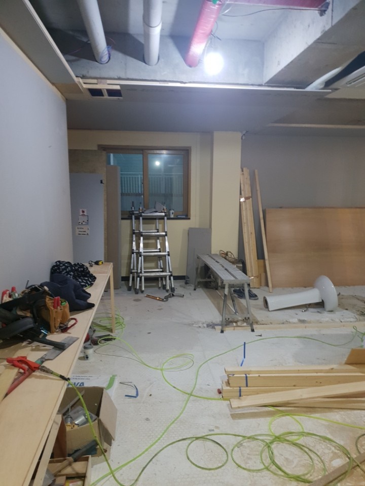 저희 916디자인은 고객님께서 컨펌한 최종시안을 토대로 전문 인력을 투입해 공사를 진행하고 있으니 안심하셔도 됩니다. 철거작업을 진행하면서 도면에 맞는 전기와 수도를 사용할 수 있도록 배선과 배관 작업을 진행한 후 목공 작업으로 레이아웃을 나누고 간접등박스, 몰딩, 웨인스코팅 등의 치장 작업을 시공합니다.
