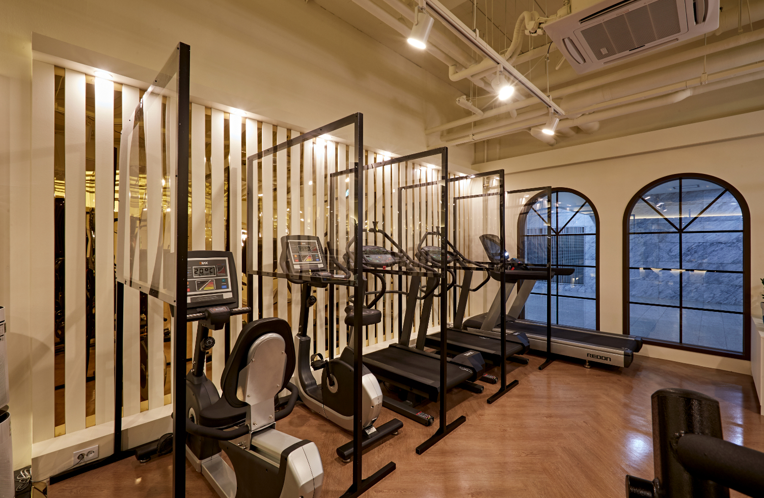 동탄 기흥 여주 헬스장인테리어 아치형 도어와 곡선 마감으로 부드러운 분위기 연출