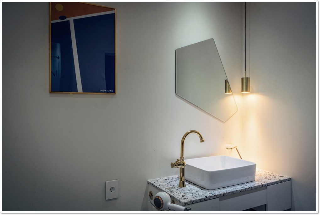 밋밋하고 어두워보일수 있는 테니스장의 분위기를 살리고 이를 밝에 만들 수 있도록 도와주는 요소중 하나는 바로 조명입니다. 방금 소개해드린 운동공간같은 경우에도 밝은 조명을 전체적을로 설치하여서 어두운 색감의 벽과 바닥을 구성하였지만 이를 조몀을 애용해서 밝게 만듬으로써 고객들이 운동에 집중하며 밝은 텐션을 유지할 수 있도록 하였으며 구석마다 이와 같은 은은한 조명으 넣어서 현대적인 감각도 살려보았습니다.