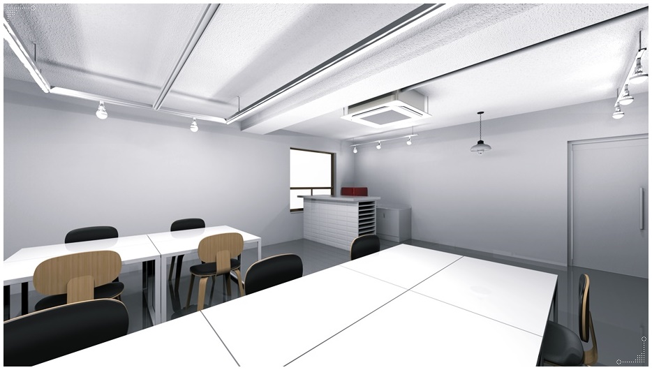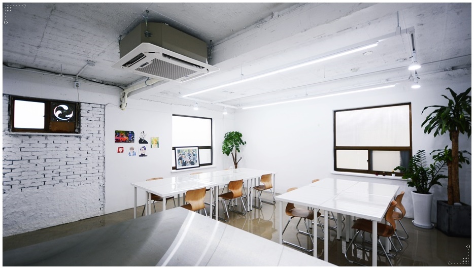 라인조명과 레일조명이 복합적인 기능을 수행해 골고루 환하게 비춰지고 화이트 컬러와 바닥에 반사되어 조도가 더욱 올라가는 효과가 있습니다. 쾌적한 환경에서 수업이 진행될 수 있도록 천장에 시스템 에어컨을 설치했고 환풍기는 그대로 보존해 원활한 환기가 이뤄질 수 있도록 했습니다.