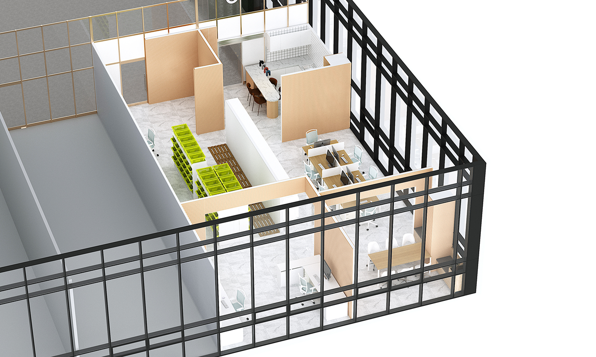이에 고객사와 협의하여 총 세 개의 독립된 공간과 작은 회의실을 만들기로 결정했고,