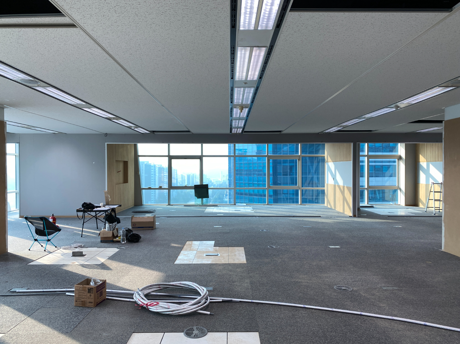 마포구 상암동 140평 대형 사무실인테리어는 평수가 넓은만큼 초반 계획이 중요했습니다. 미리 배선 작업의 경로와 전체 배치도를 생각하여서 시공을 하였으며, 베테랑들의 솜씨로 깔끔한 철거작업 후 틀을 잡아나갔는데요.
