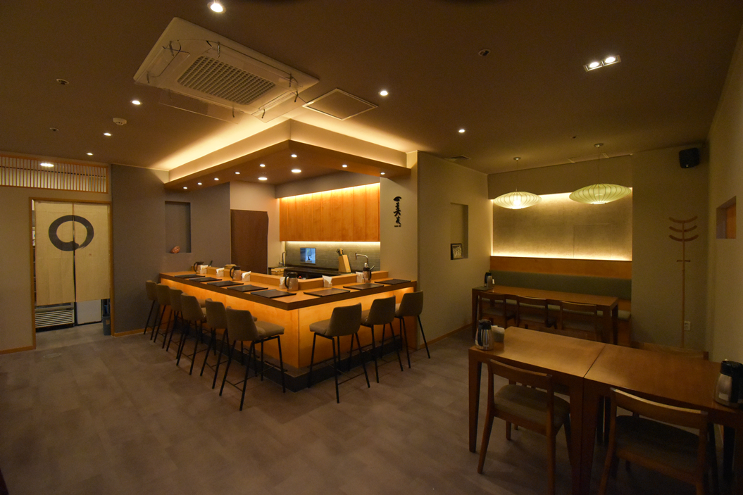 일식집의 핵심은 정갈함과 신뢰입니다. 이를 시각적으로 전달하기 위해 오픈형 주방 설계를 적용했습니다.