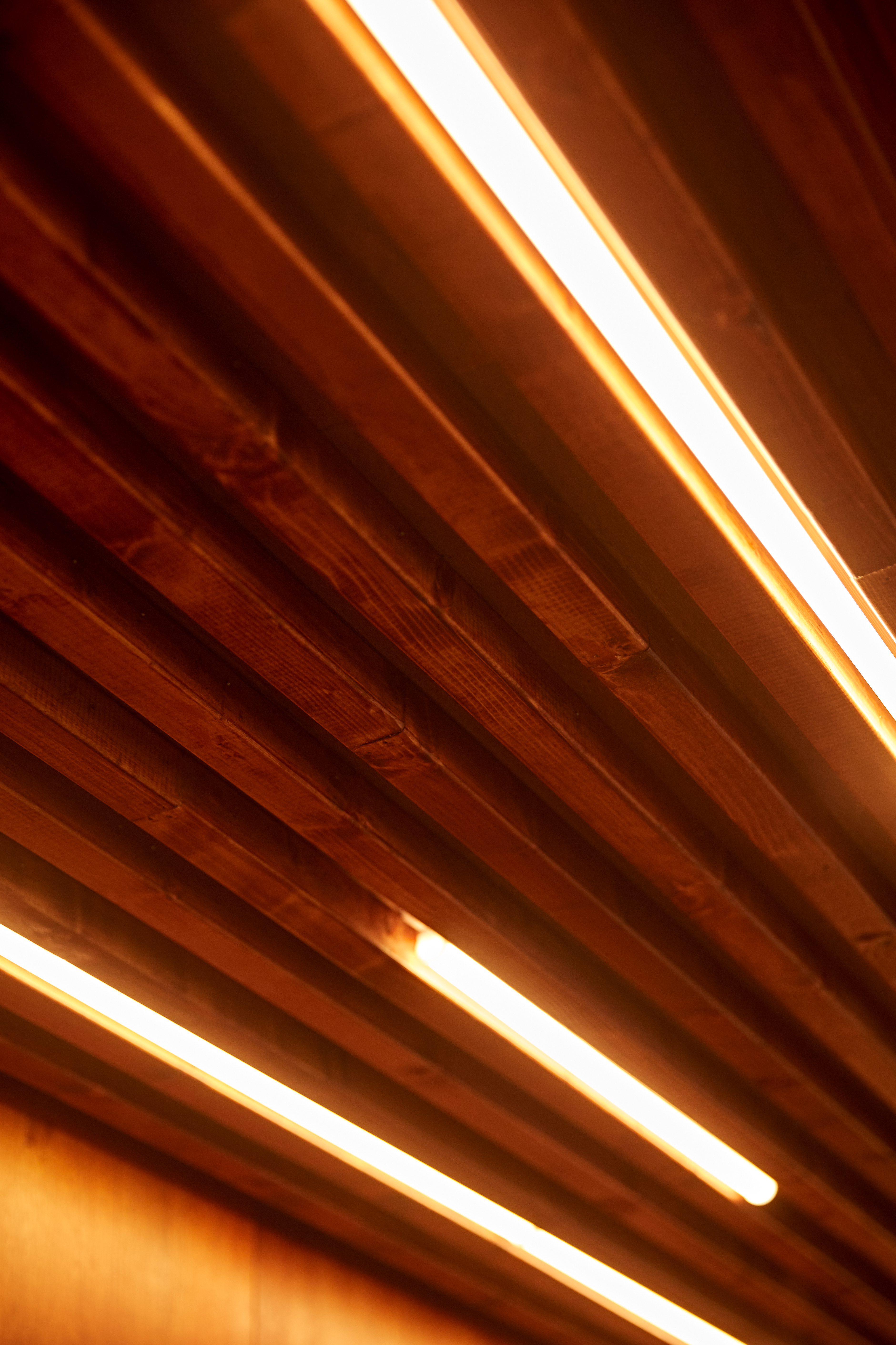 루버 목재 재질의 인테리어를 적극 활용 할 수가 있었습니다.