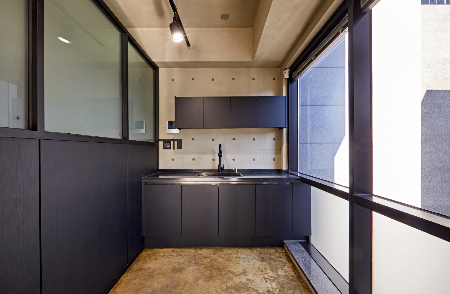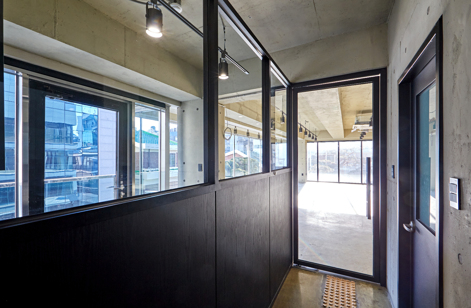 입구의 경우 노출 콘크리트 컨셉 사이에
