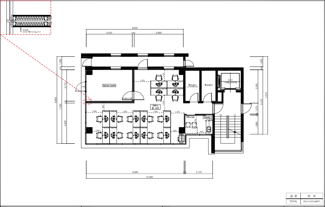 또한 한 쪽에는 탕비실을 배치하였는데,
