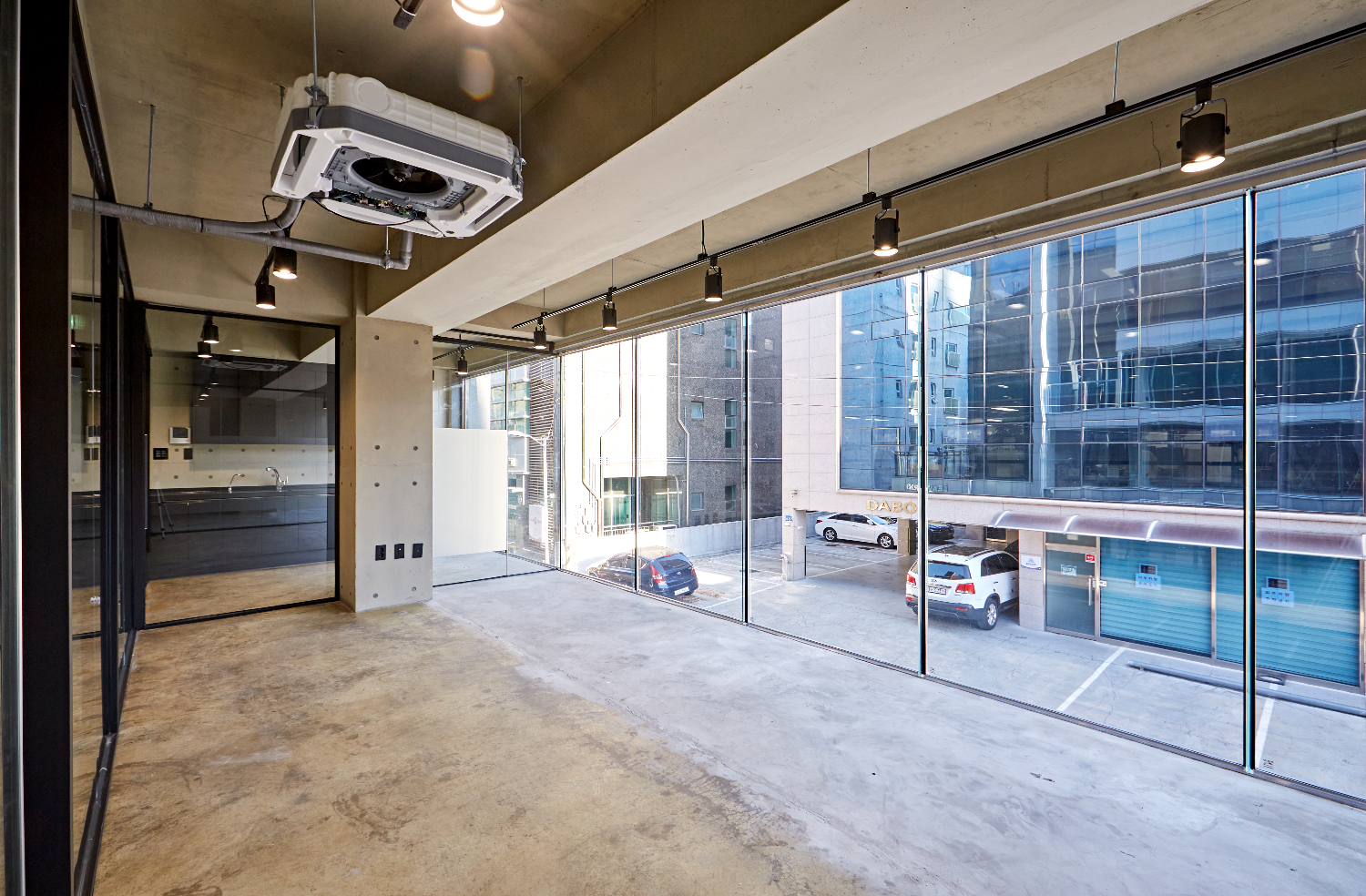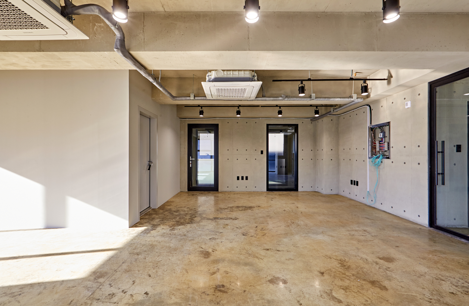 바닥과 벽면이 노출 콘크리트 형식으로