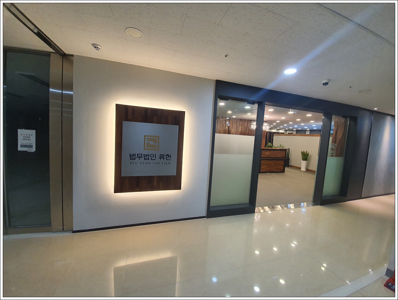일반적으로 법무법인의 간판은 딱딱하면서 정형화된 연출이 대부분인데 이 곳 간판은 멀리서도 눈에 확 띄게 만들어진듯 합니다. 인테리어에 사용된 자재와 통일된 수종과 칼라로 제작된 간판이 내부와 이질감없이 깔끔하게 어울리는