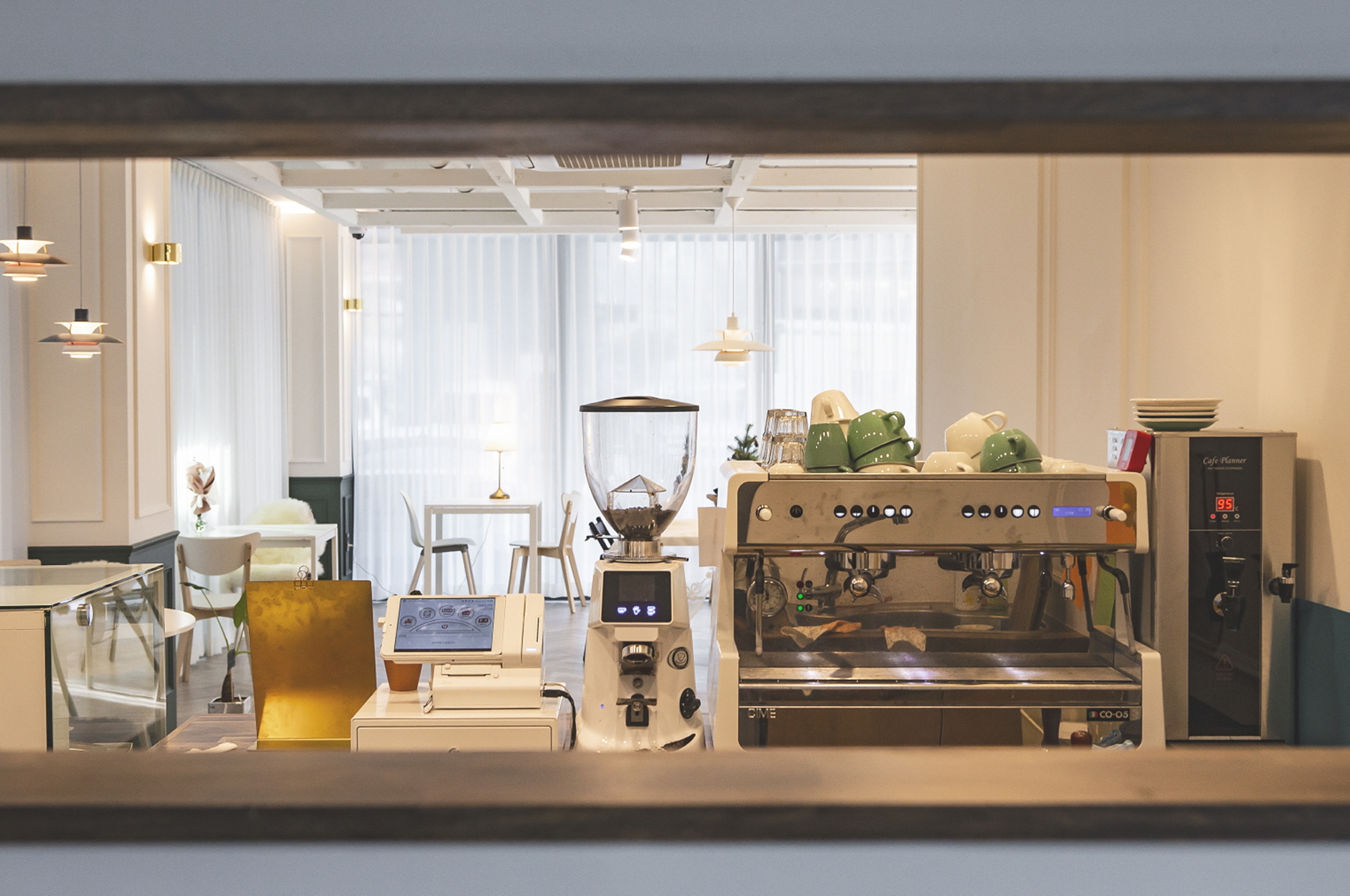 커피숍 카페인테리어 카운터 테이블 전경