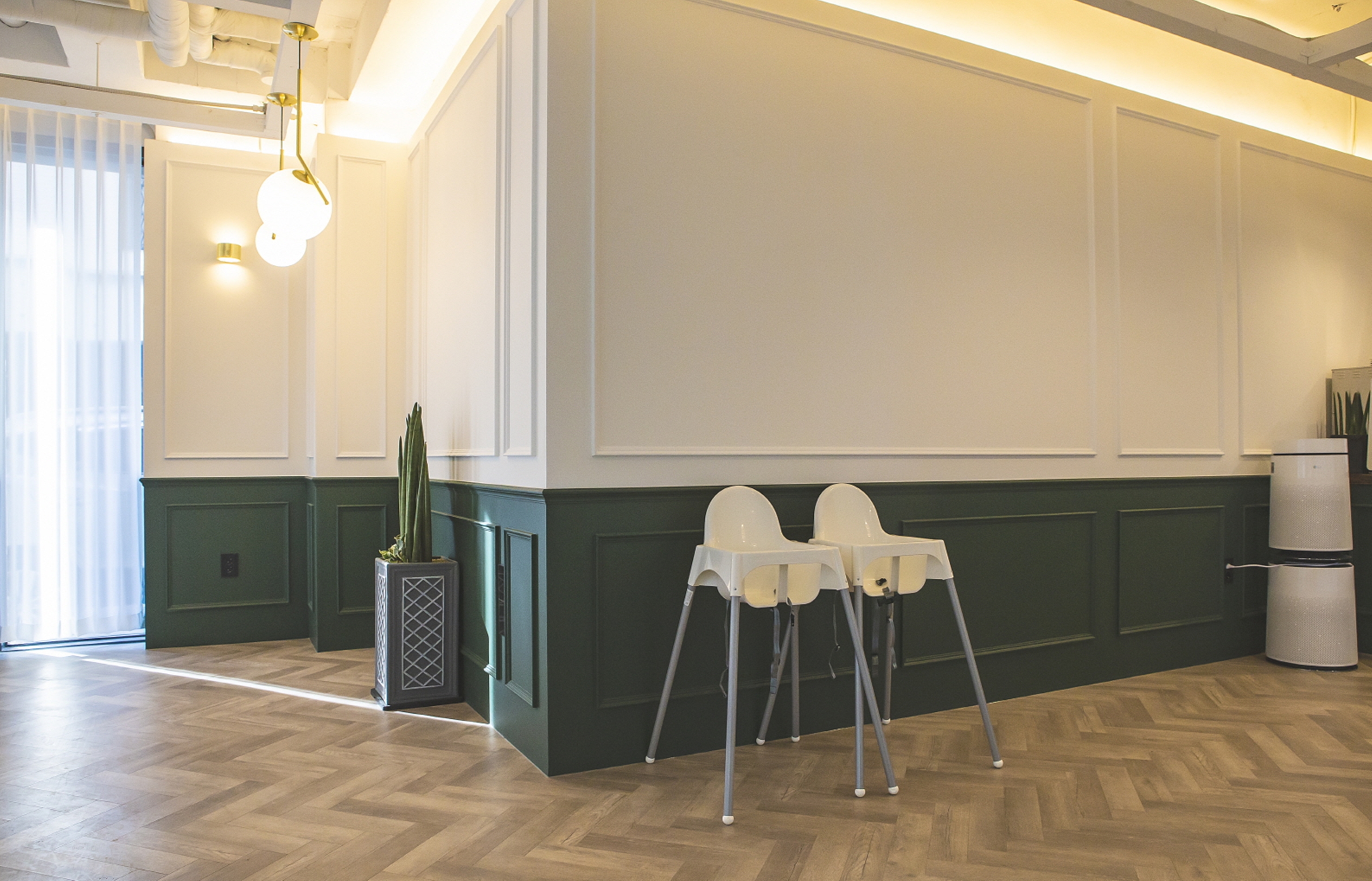 웨인스코팅 마감이 특징인 현장 입니다.