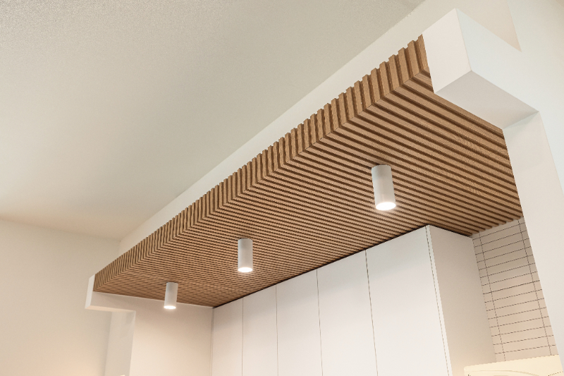 템바보드 형식처럼 목재를 천장소재로 활용해