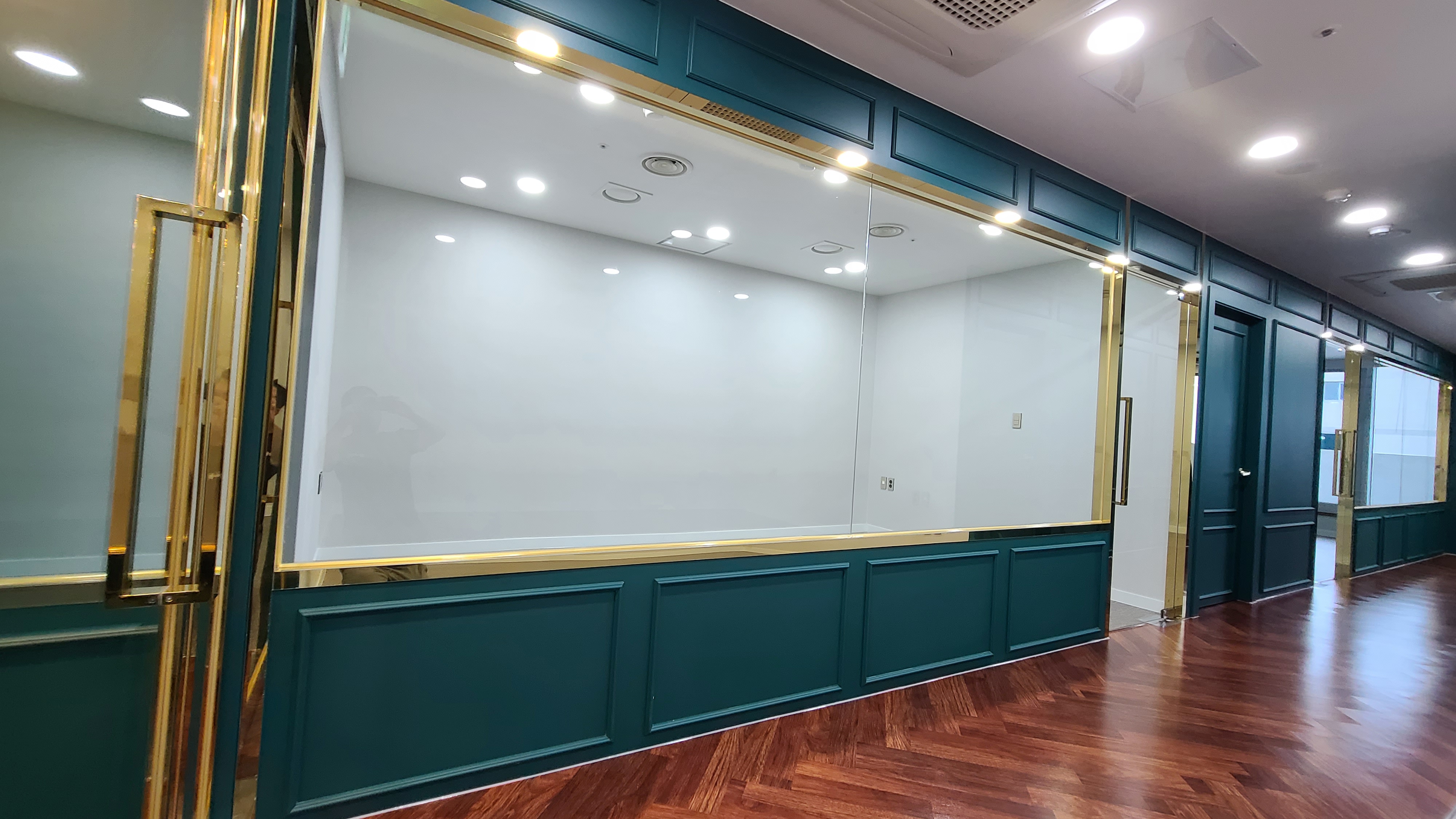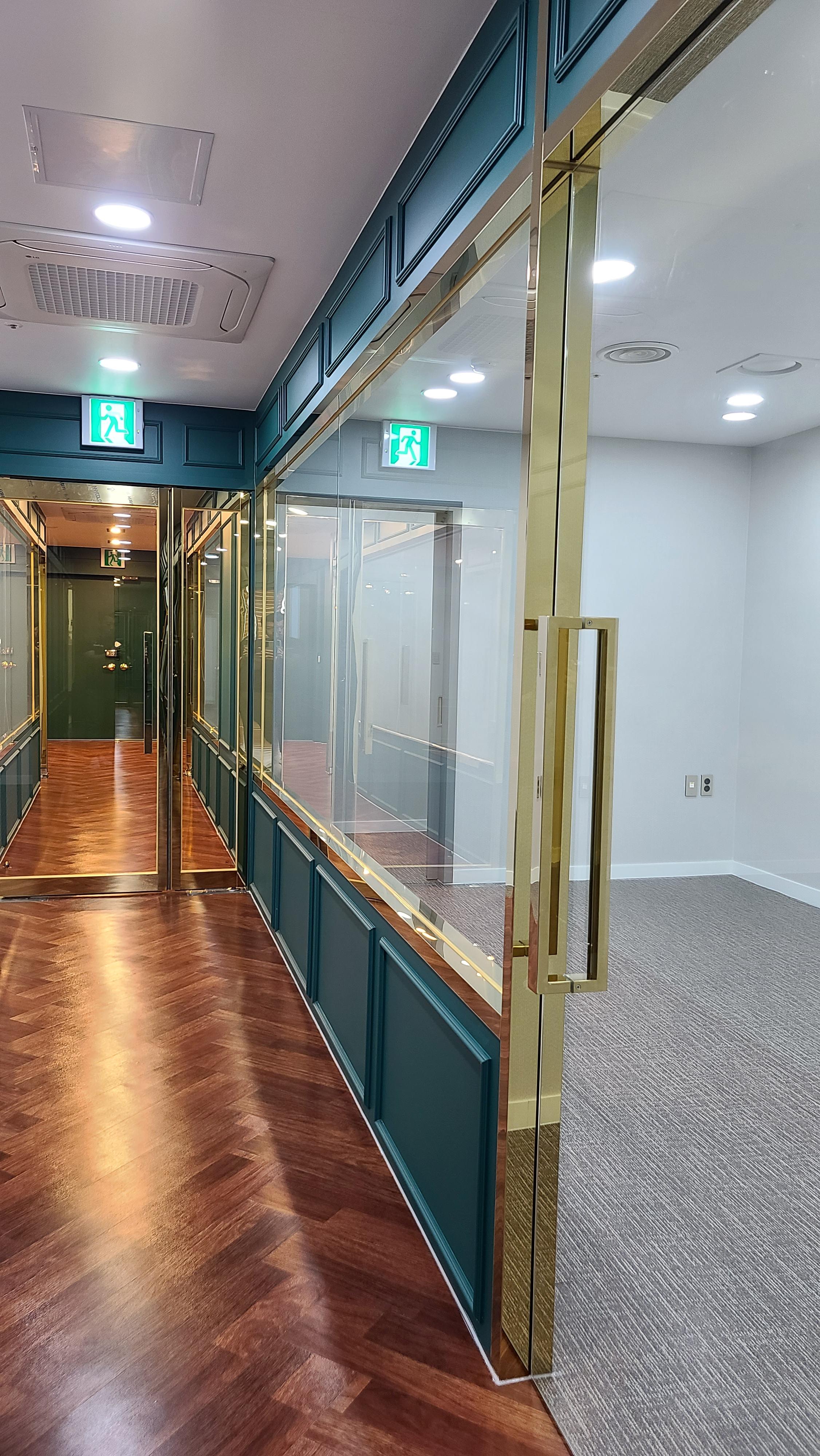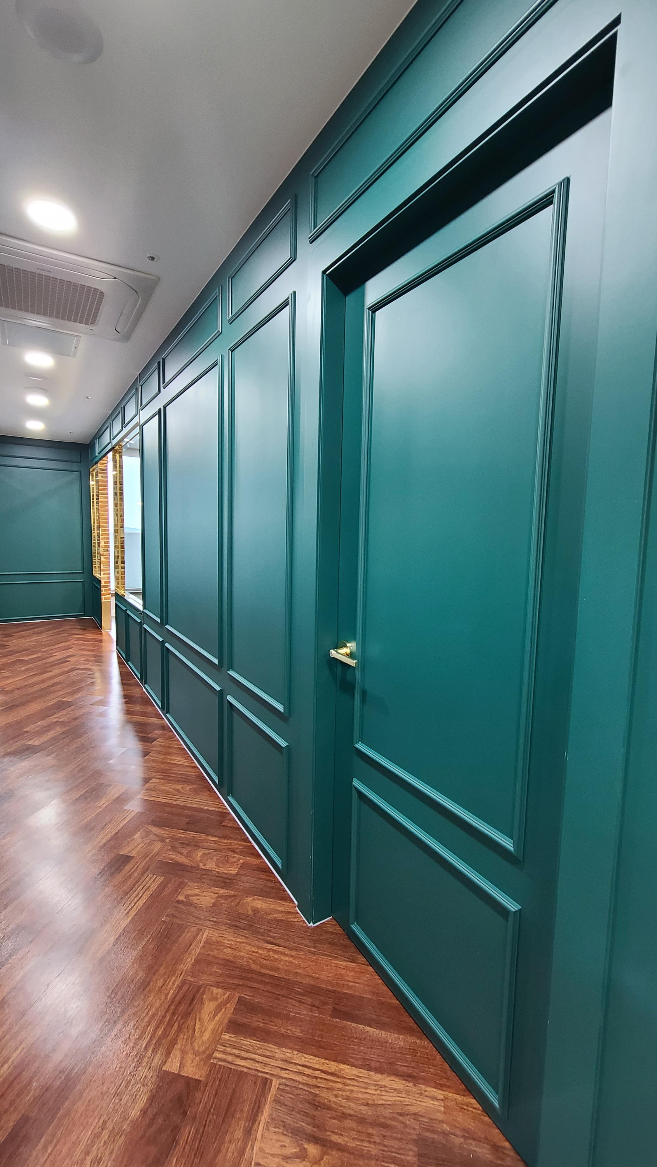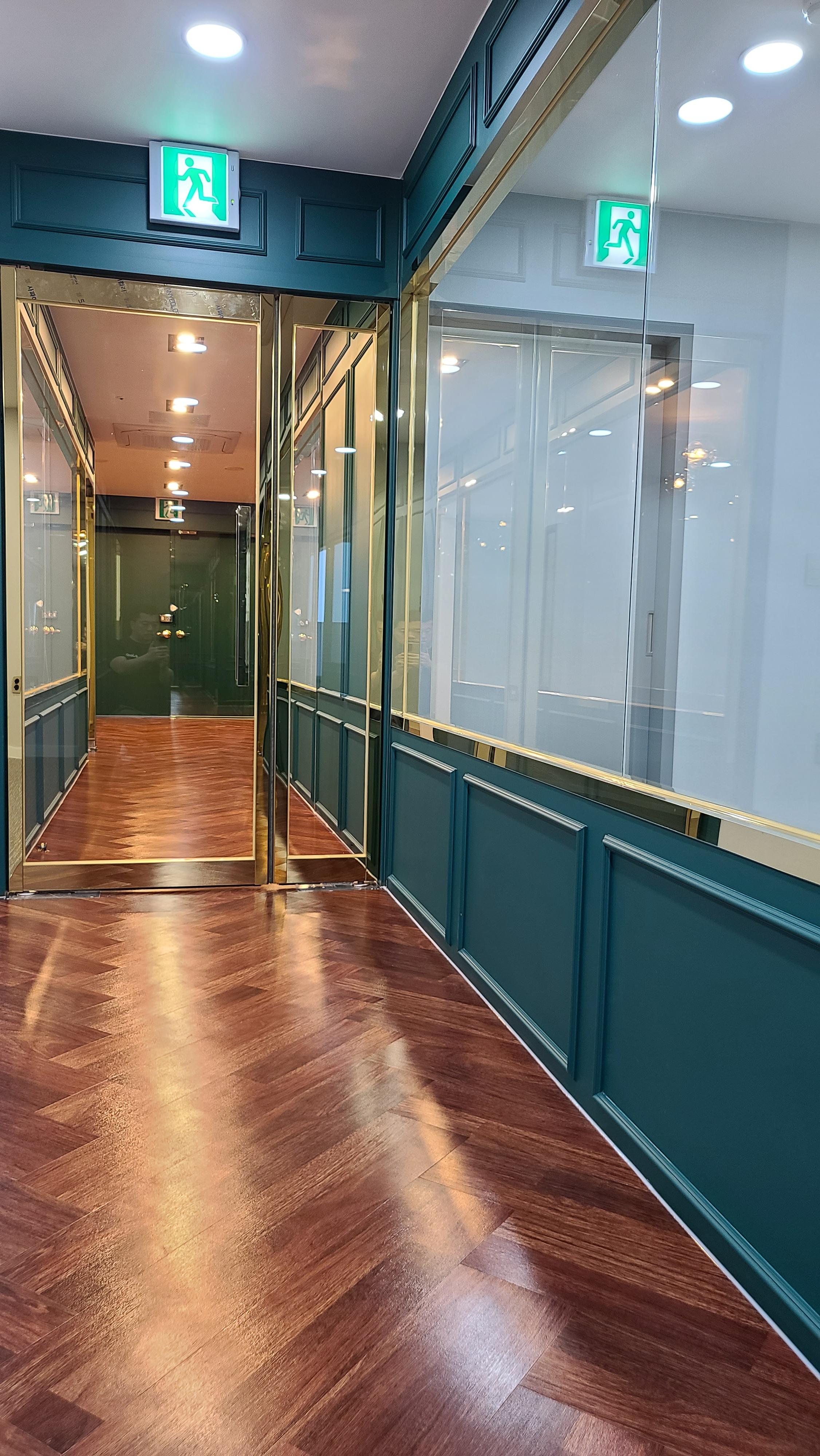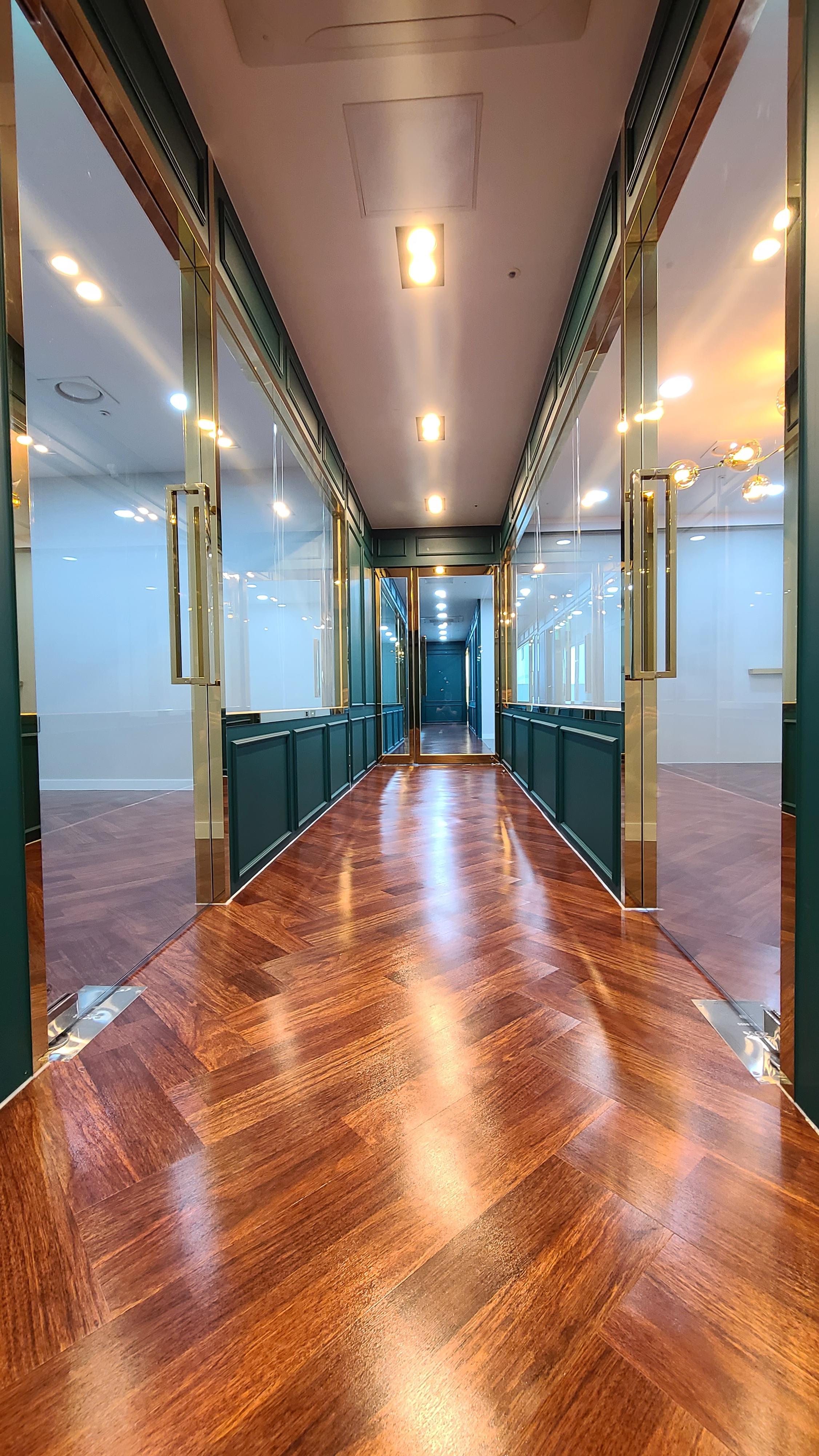 복도를 거닐면, 고급스러운 우드 바닥재와