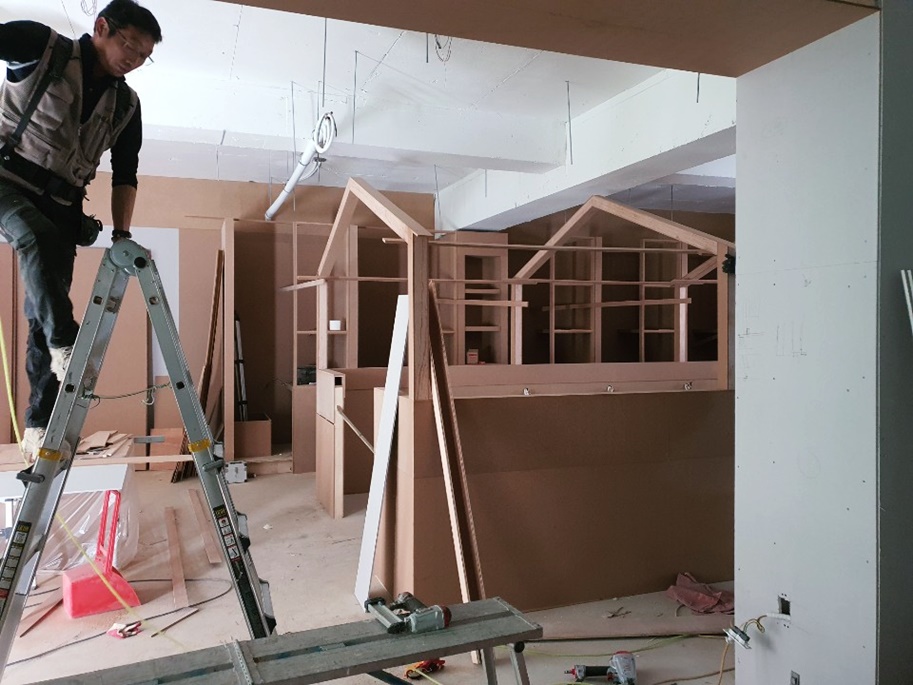인테리어에서 가장 중요하다고 할 수 있는 공간 분리는 물론 몰딩, 웨인스코팅, 맞춤가구 등의 장식 작업까지 모두 목공작업을 통해 이뤄지고 있습니다. 공사의 70~80%에 해당하는 목공사를 제대로 해야 안전하고 멋진 공간을 만들 수 있기 때문에 916디자인은 베테랑 전문인력과 함께 시공을 진행하고 있습니다.
