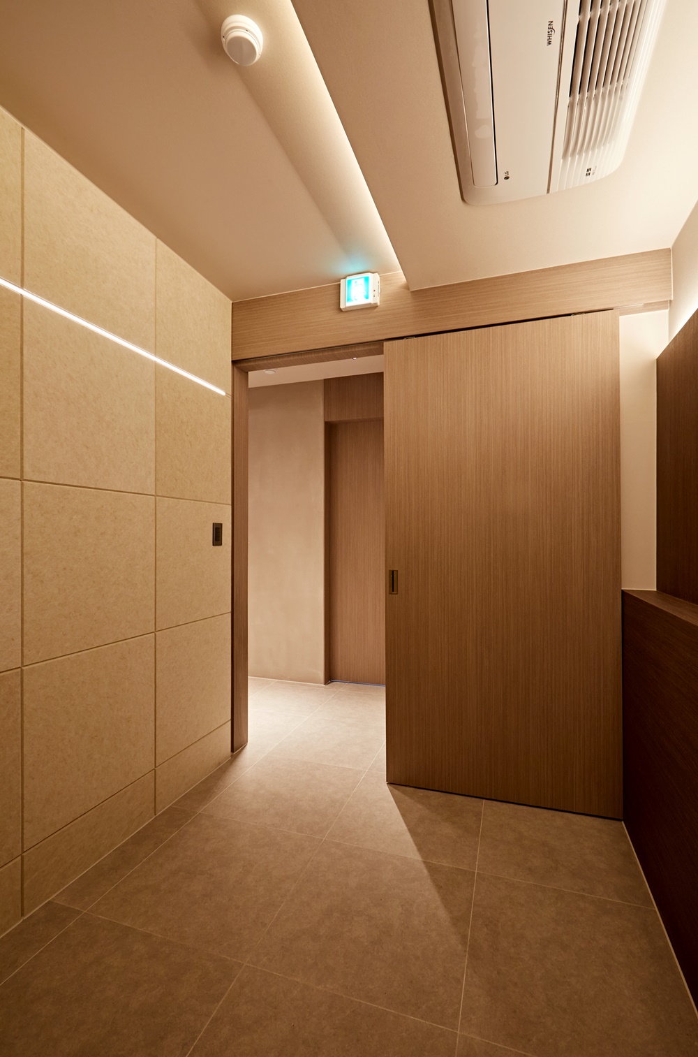 대신, 천장에 매입등을 설치하여 은은한 빛이 공간 전체에 퍼지도록 하였습니다.