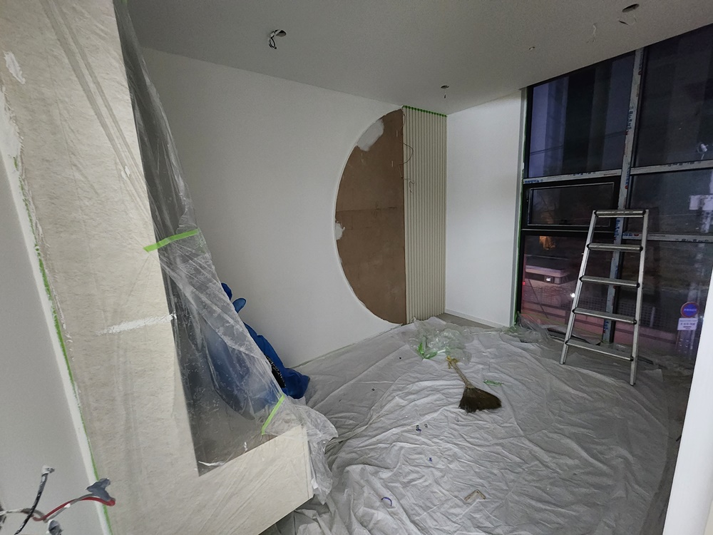 앞서 에스테틱샵의 디자인이 확정된 후, 실제 시공 단계로 들어가는 모습입니다.