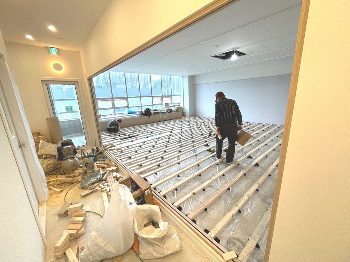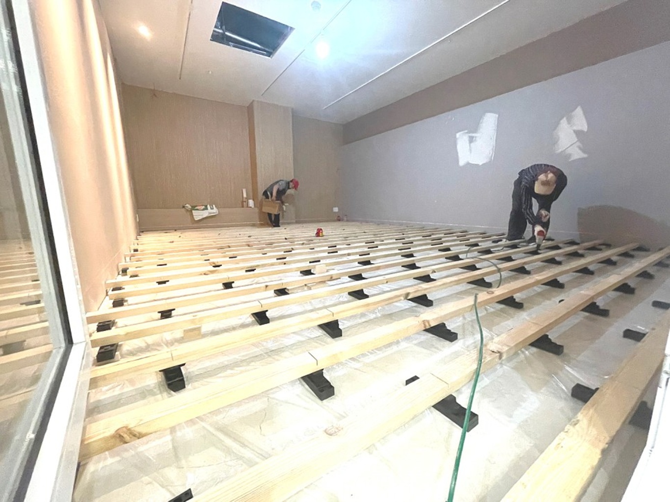 댄스 플로어 시공 과정은 복잡하고 섬세한 작업입니다.